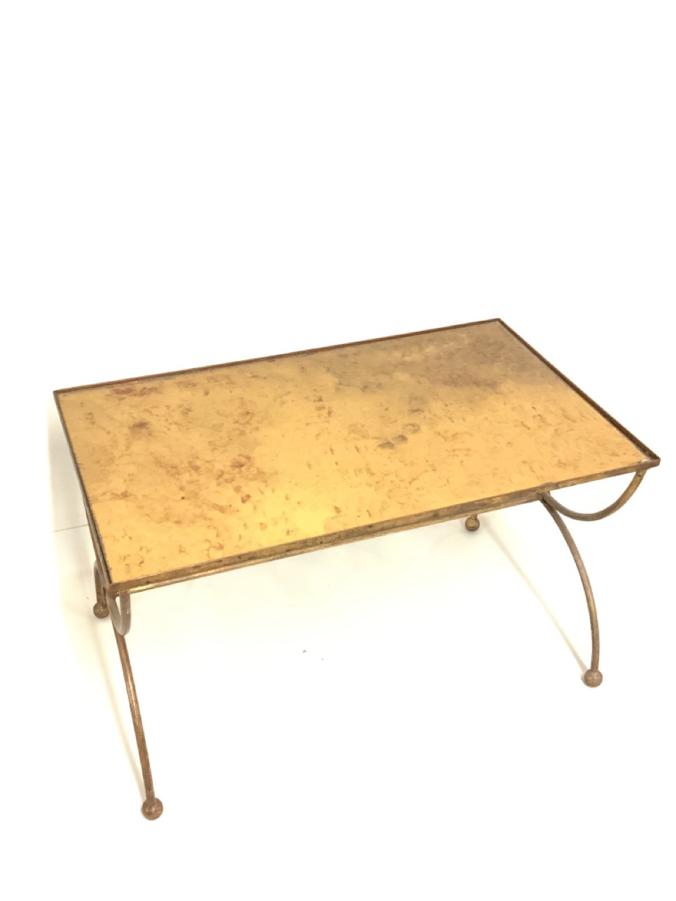 Wrought iron and gold metallic glass top table.