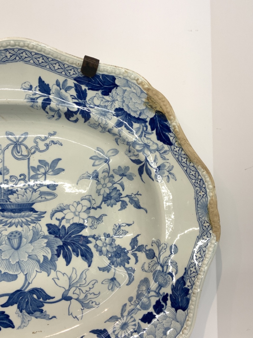 Monumental Wedgwood blue and white transferware porcelain meat platters. Restoration noted. Please see photograph preview or call.