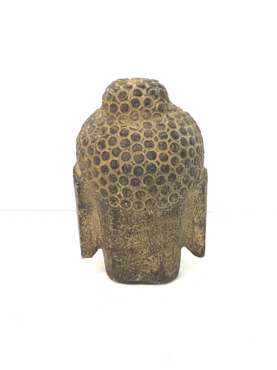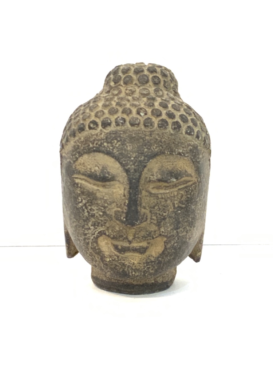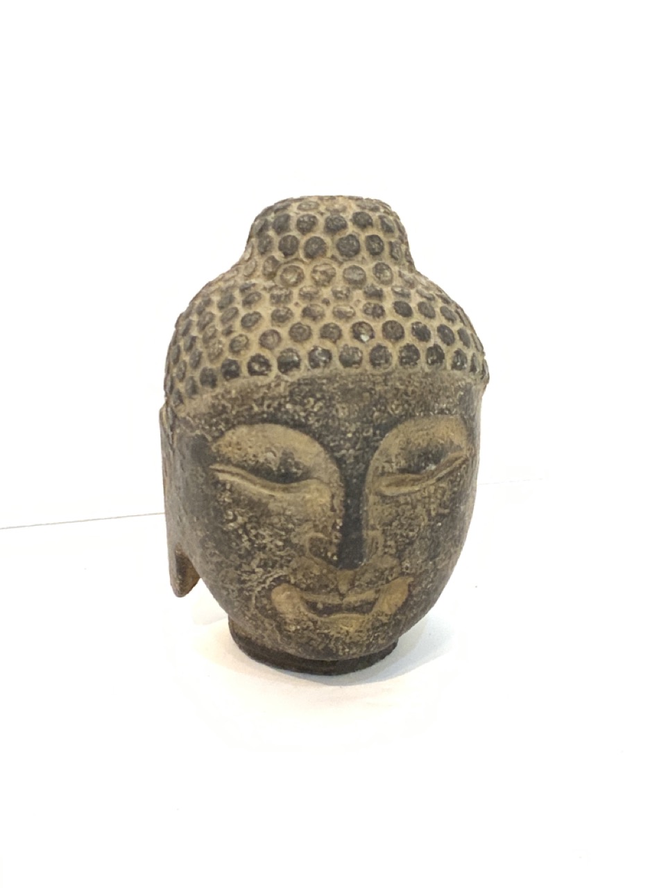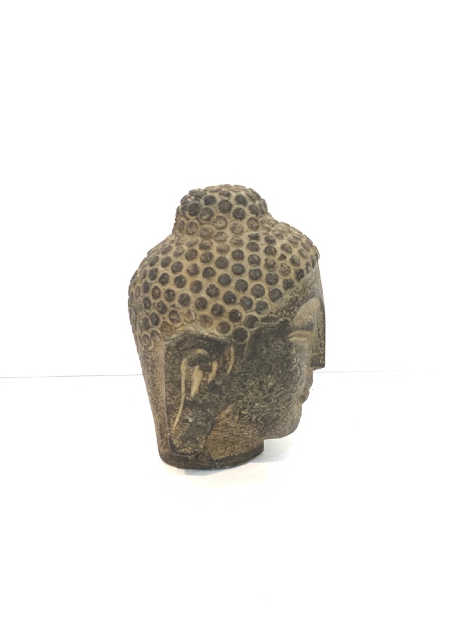 Carved stone Buddha head.