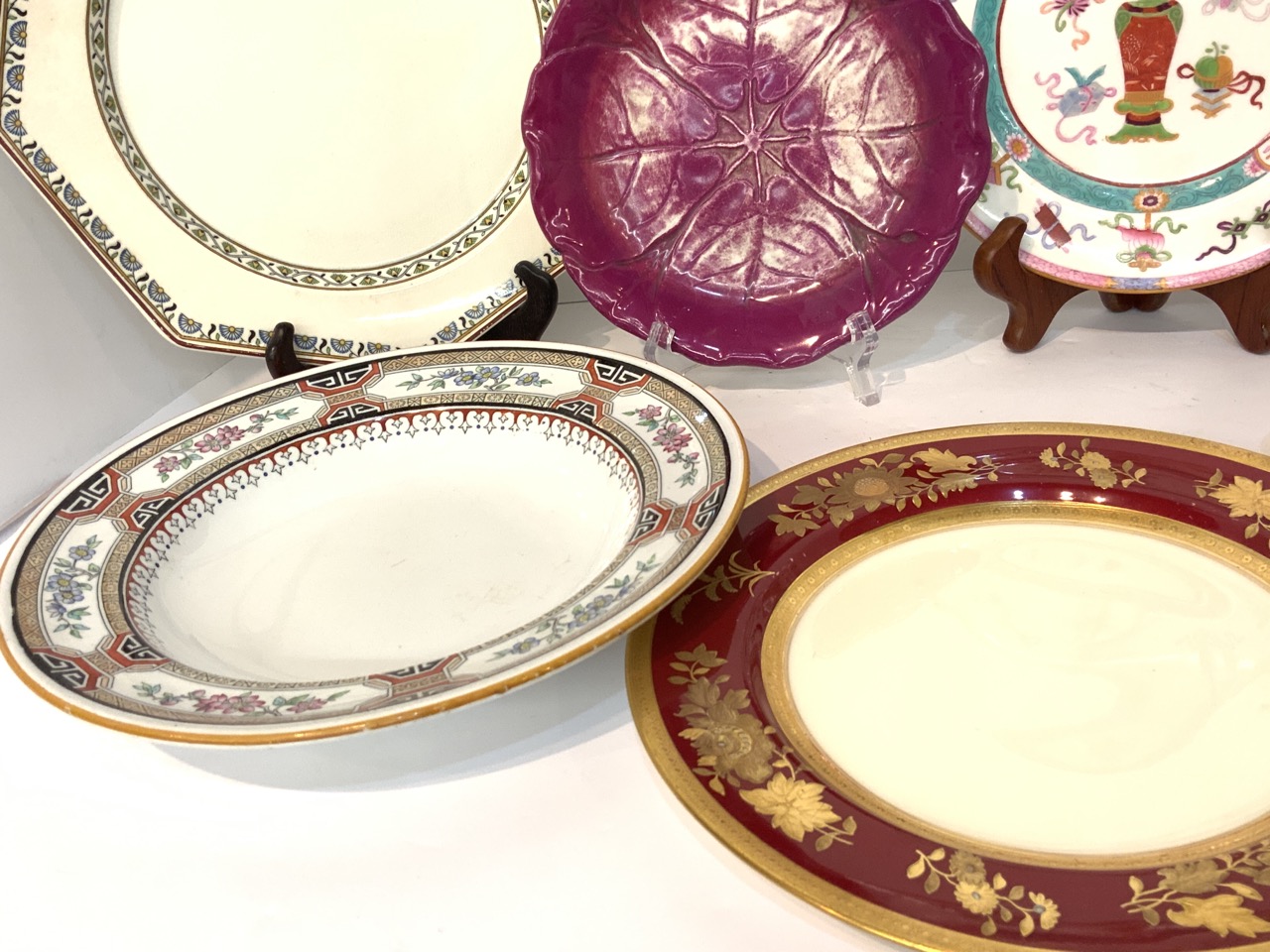 A compiled grouping of Minton porcelain plates.