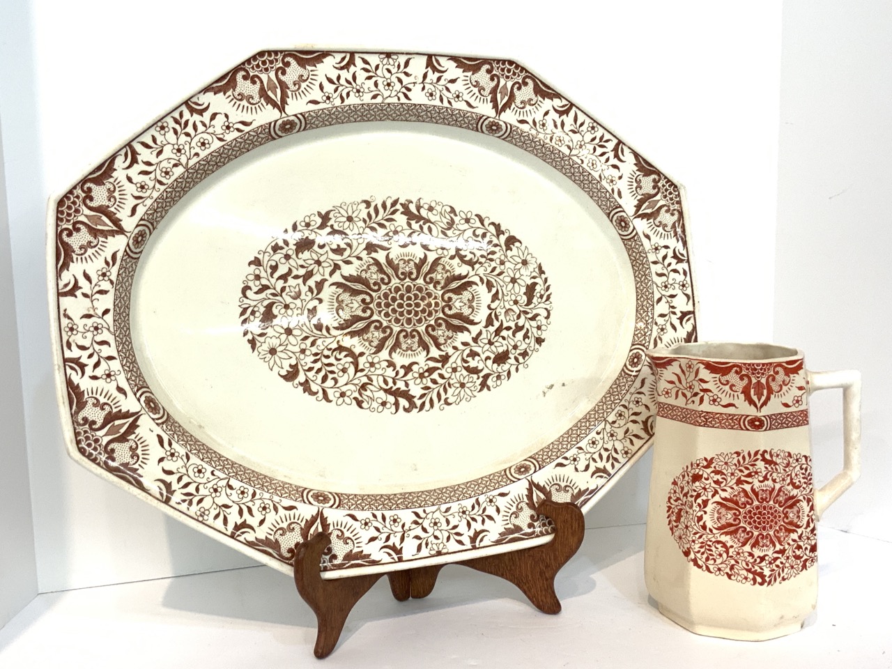 Minton "Denmark" transfwerware platter and pitcher.