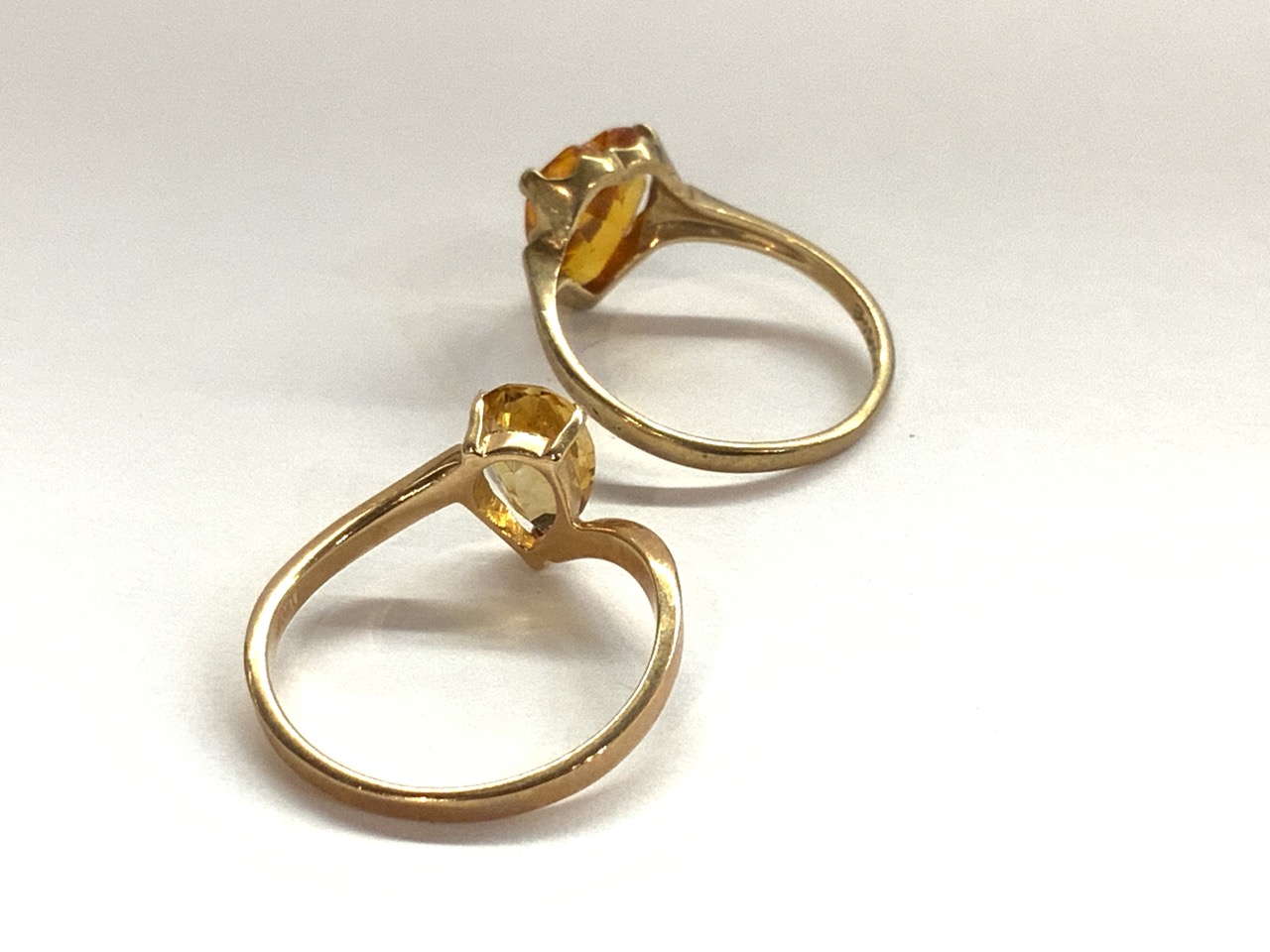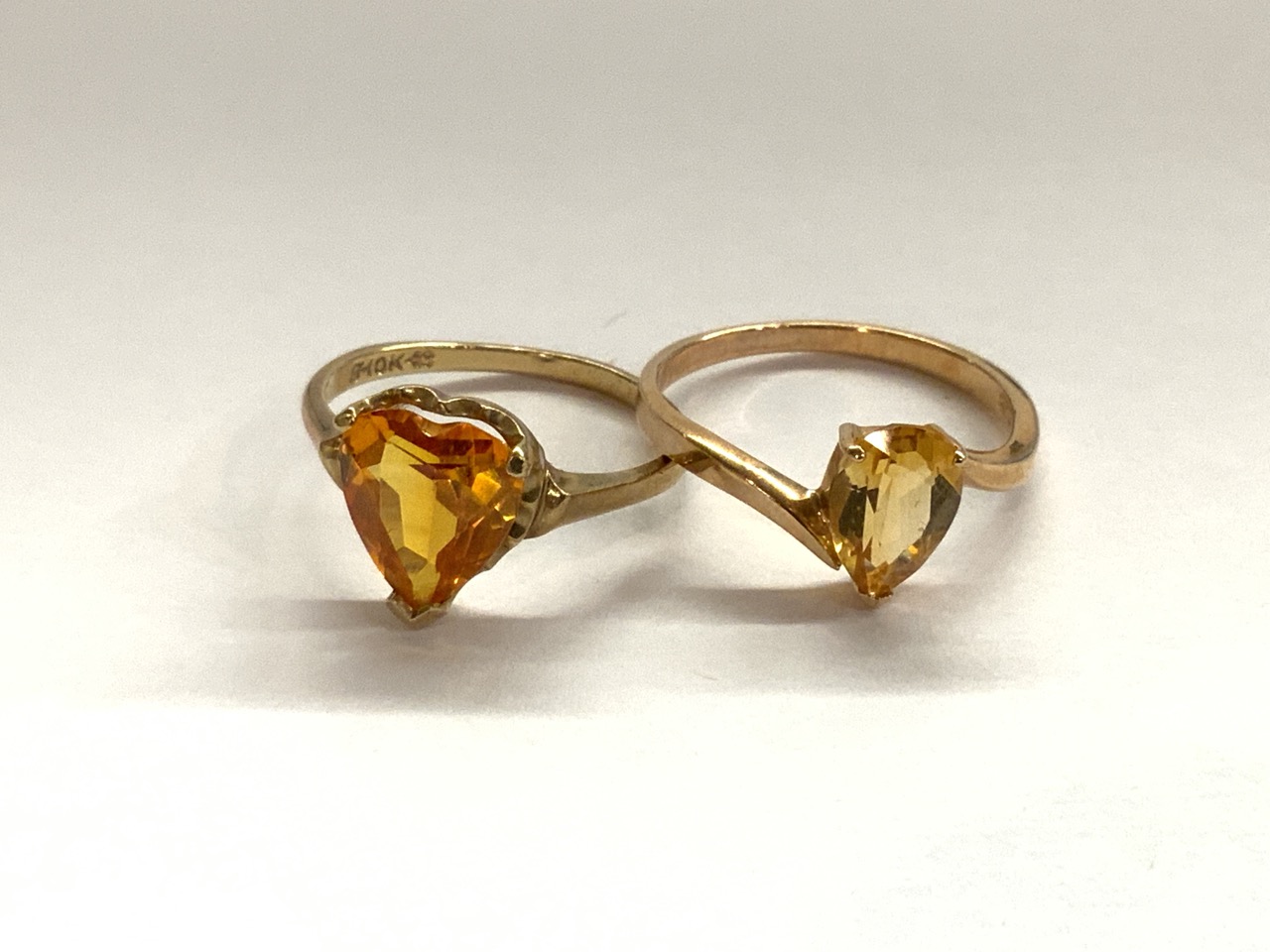 Two (2) 10k gold citrine rings. Size 8