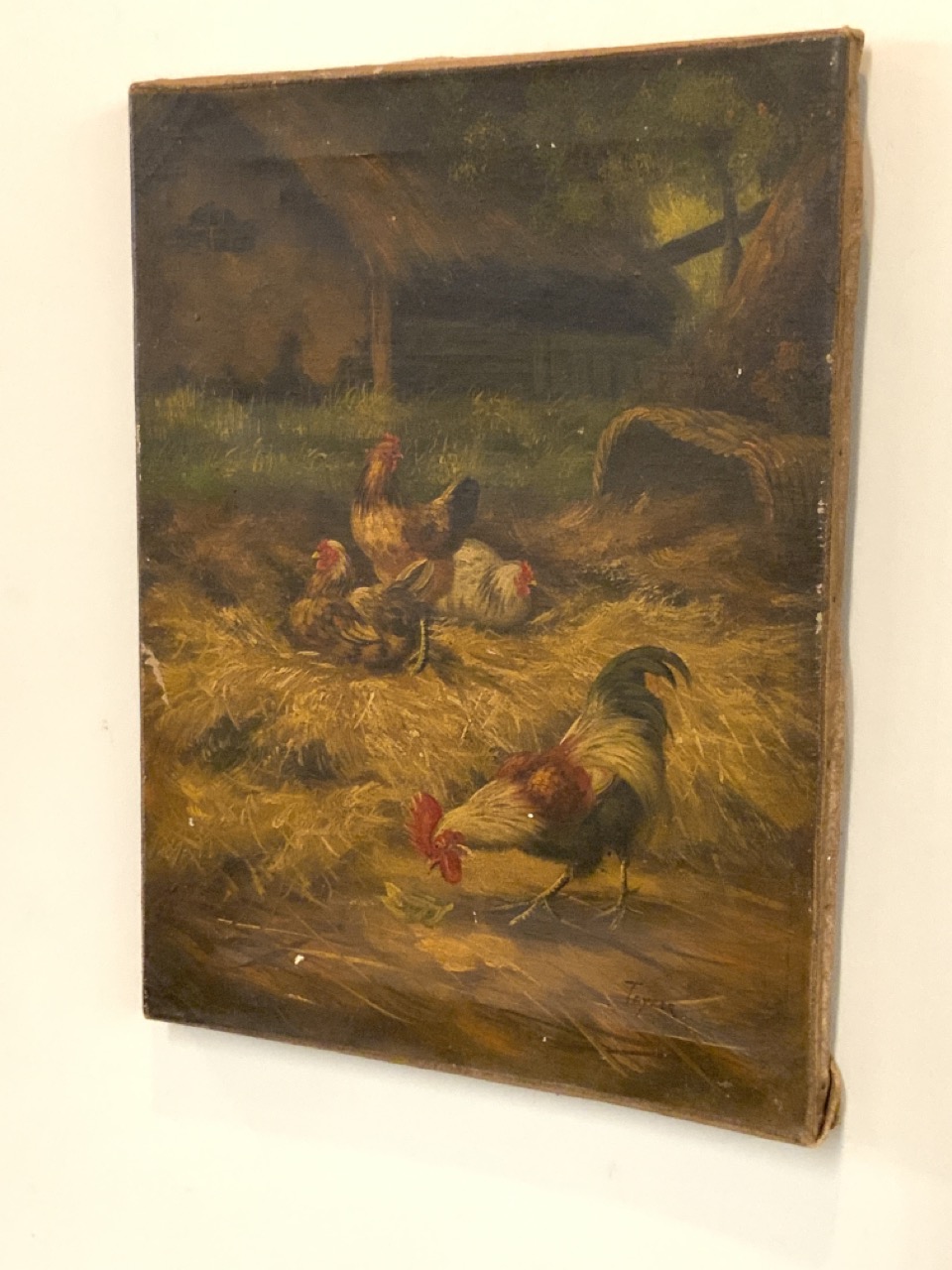 Barnyard with chickens and rooster.