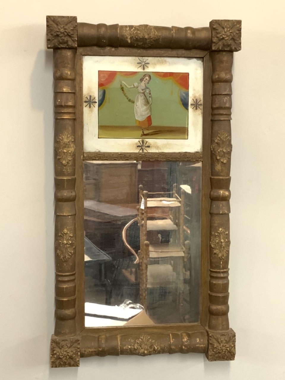 A Federal giltwood and Eglomise mirror.