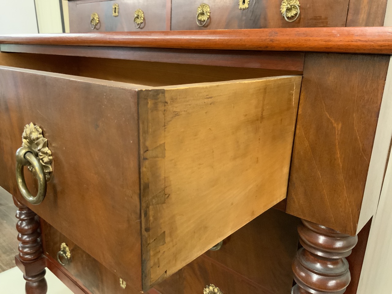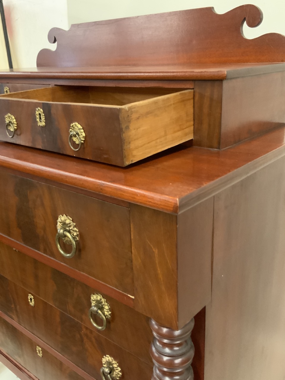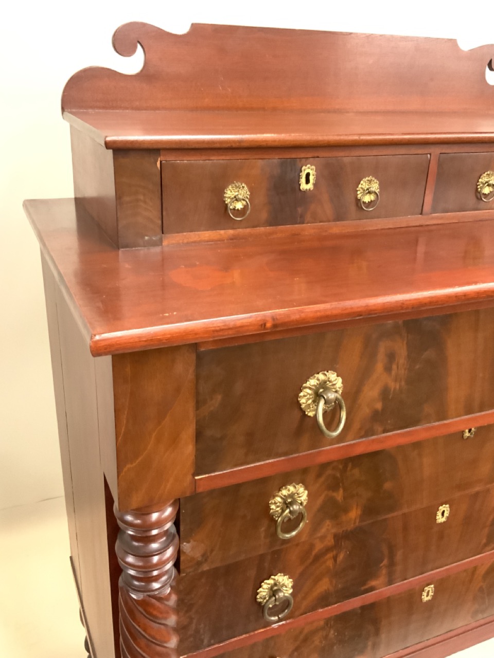 Empire carved mahogany 2 over 4 chest of drawers.