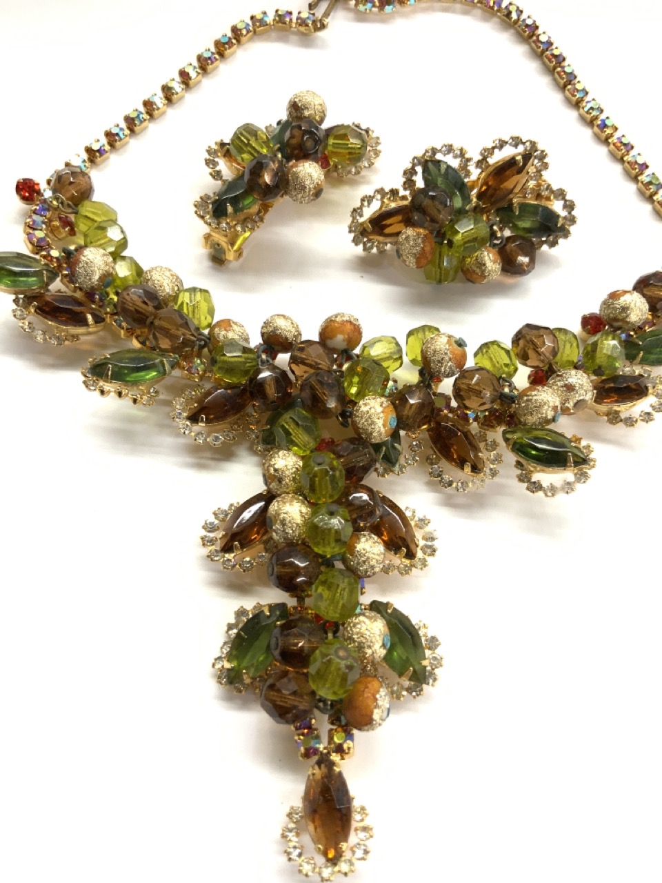 Dimensions: 8 1/2" drop and earrings are 2" in length.