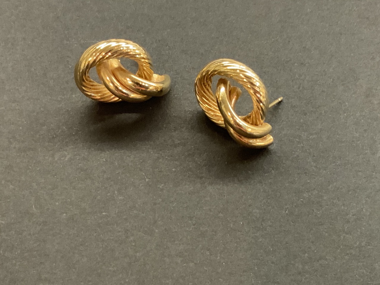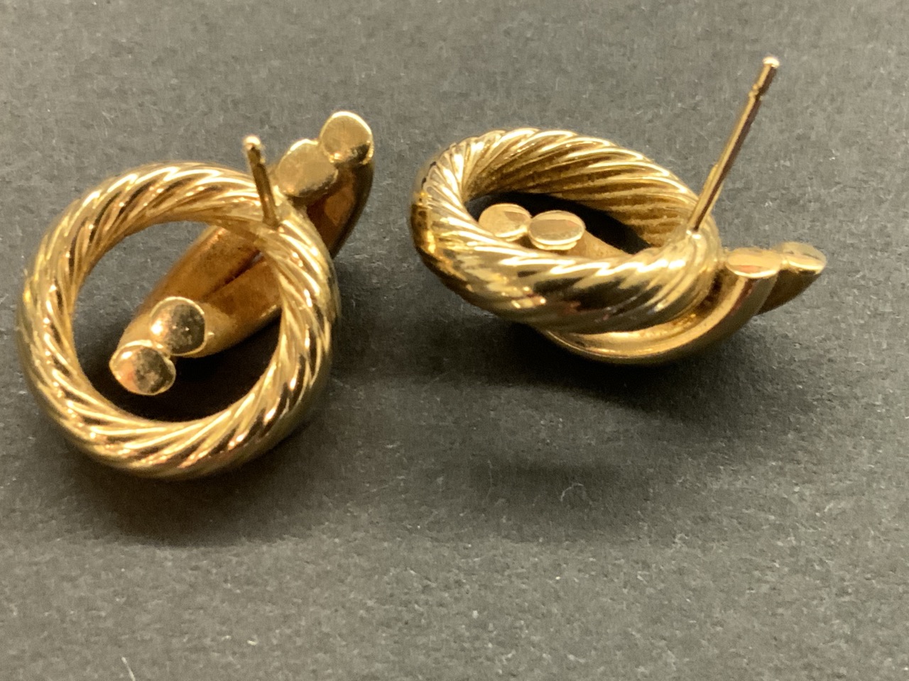 14k pair of gold earrings.