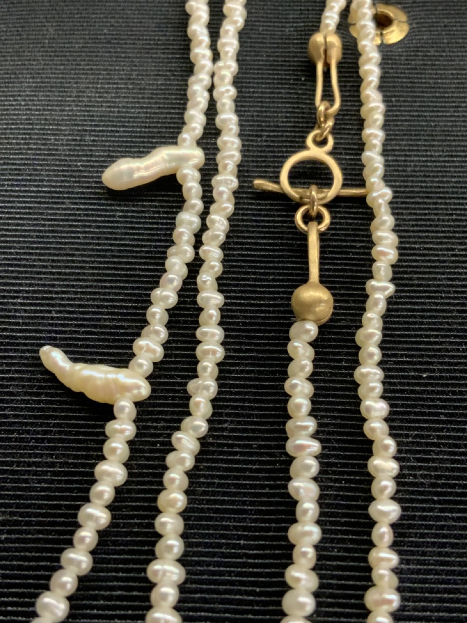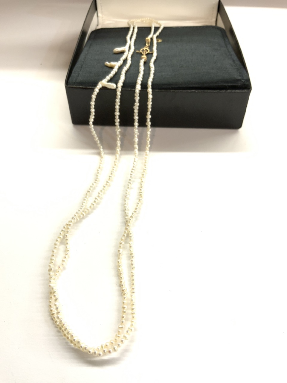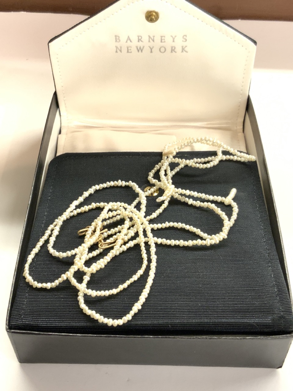 Barneys New York 27" drop pearl necklace with 14k gold clasp. Unsigned.