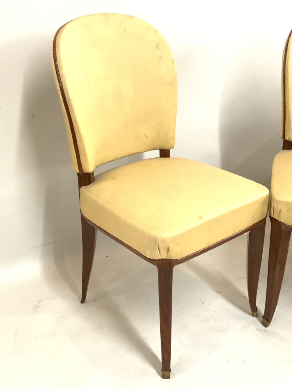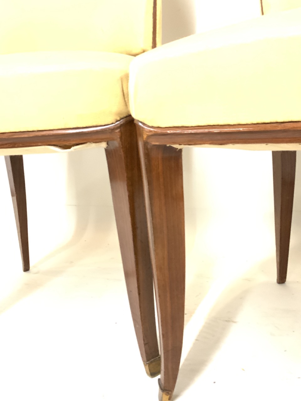 Pair of Rosewood side chairs with tapered brass feet.