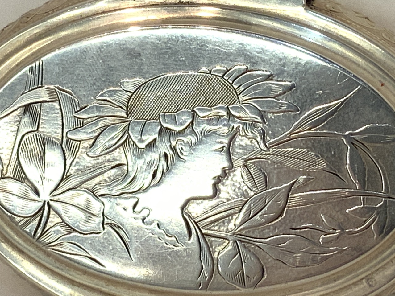 An Art Nouveau period English sterling silver compact.