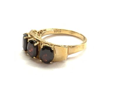Size 10 Three (3) Stone Garnet Ring set in 14k yellow gold. Fit for a King. Dimensions: Size 10 Total weight: 7.40 grams