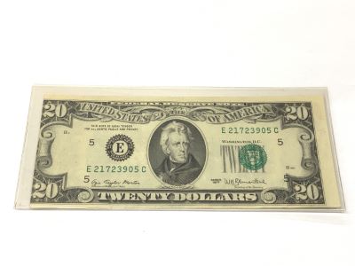 $20 1977 U.S. Federal Reserve Note (FRN) Obv Misalignment Error. Ungraded.