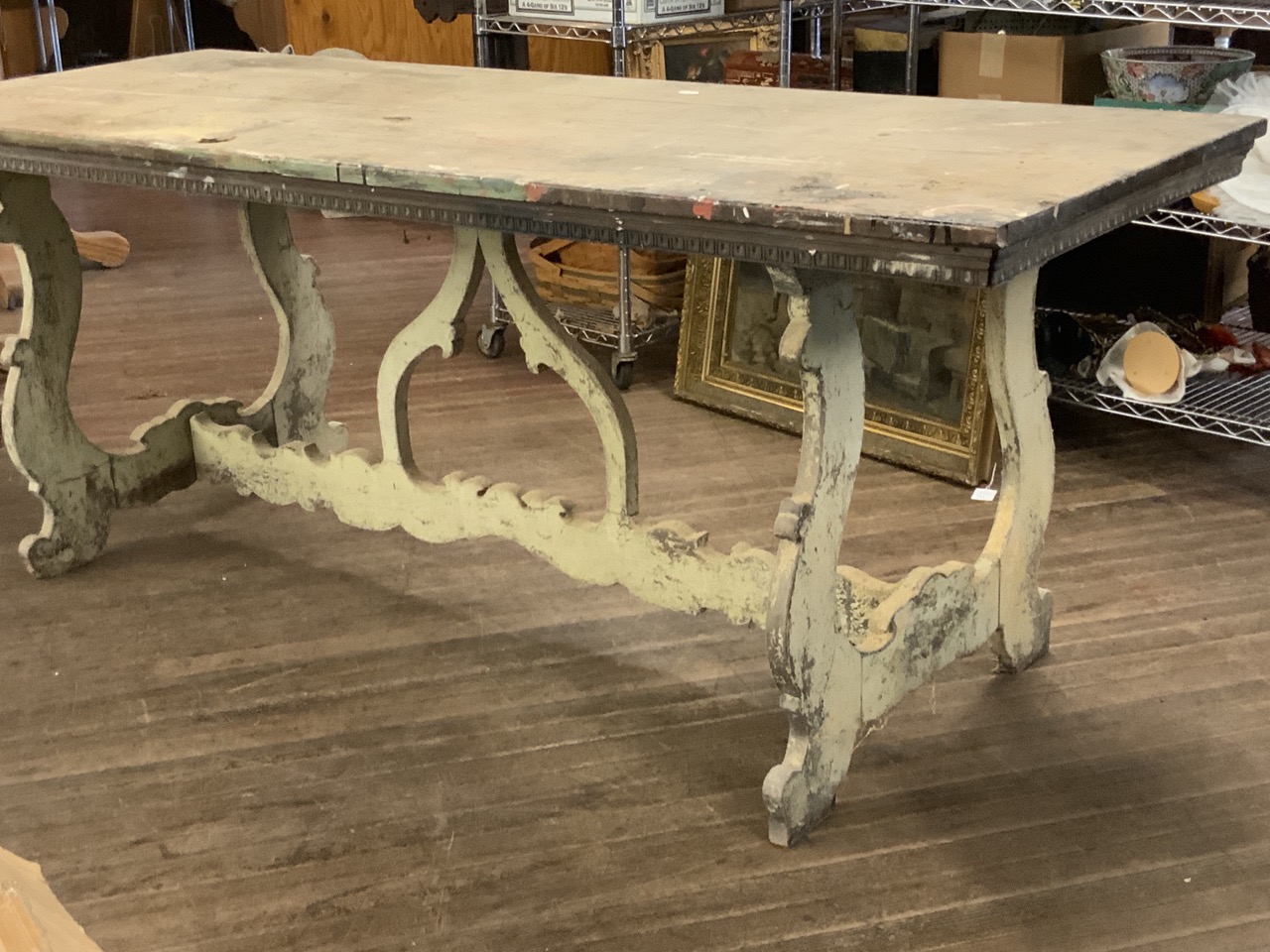 The most ornate base we have had. Top needs strip down and redo. Found in 18th c. Montgomery house basement.