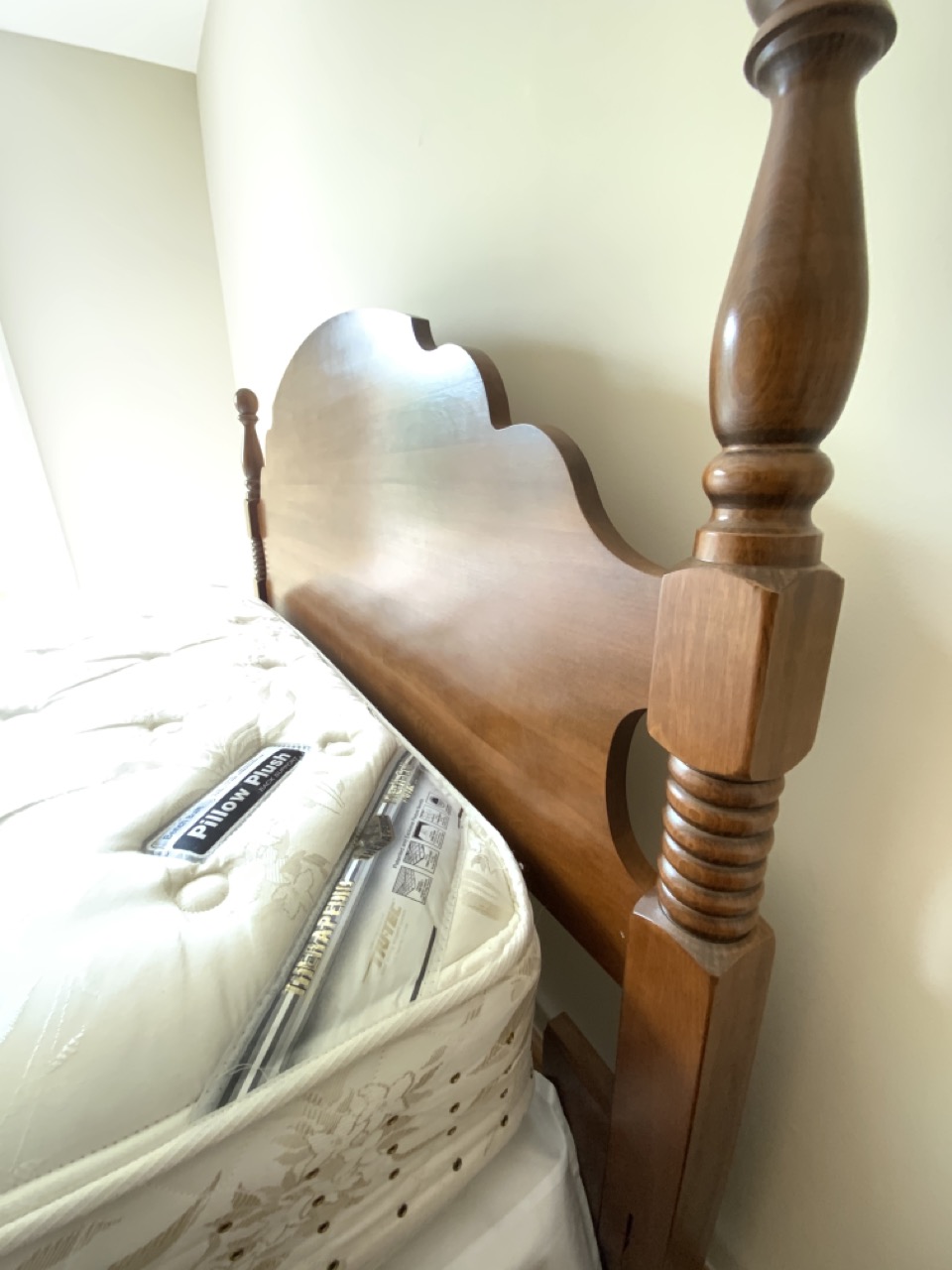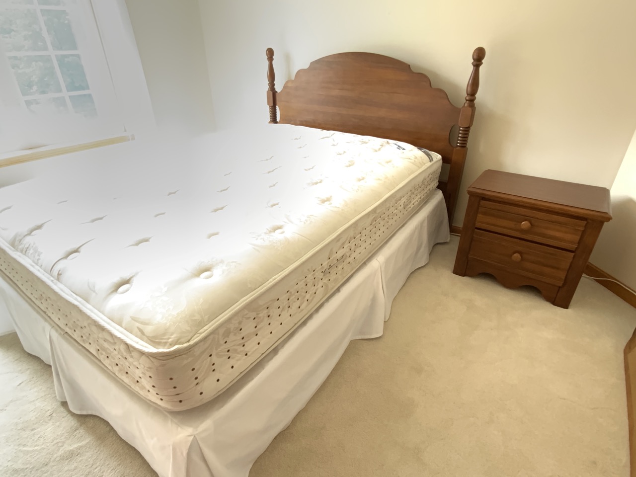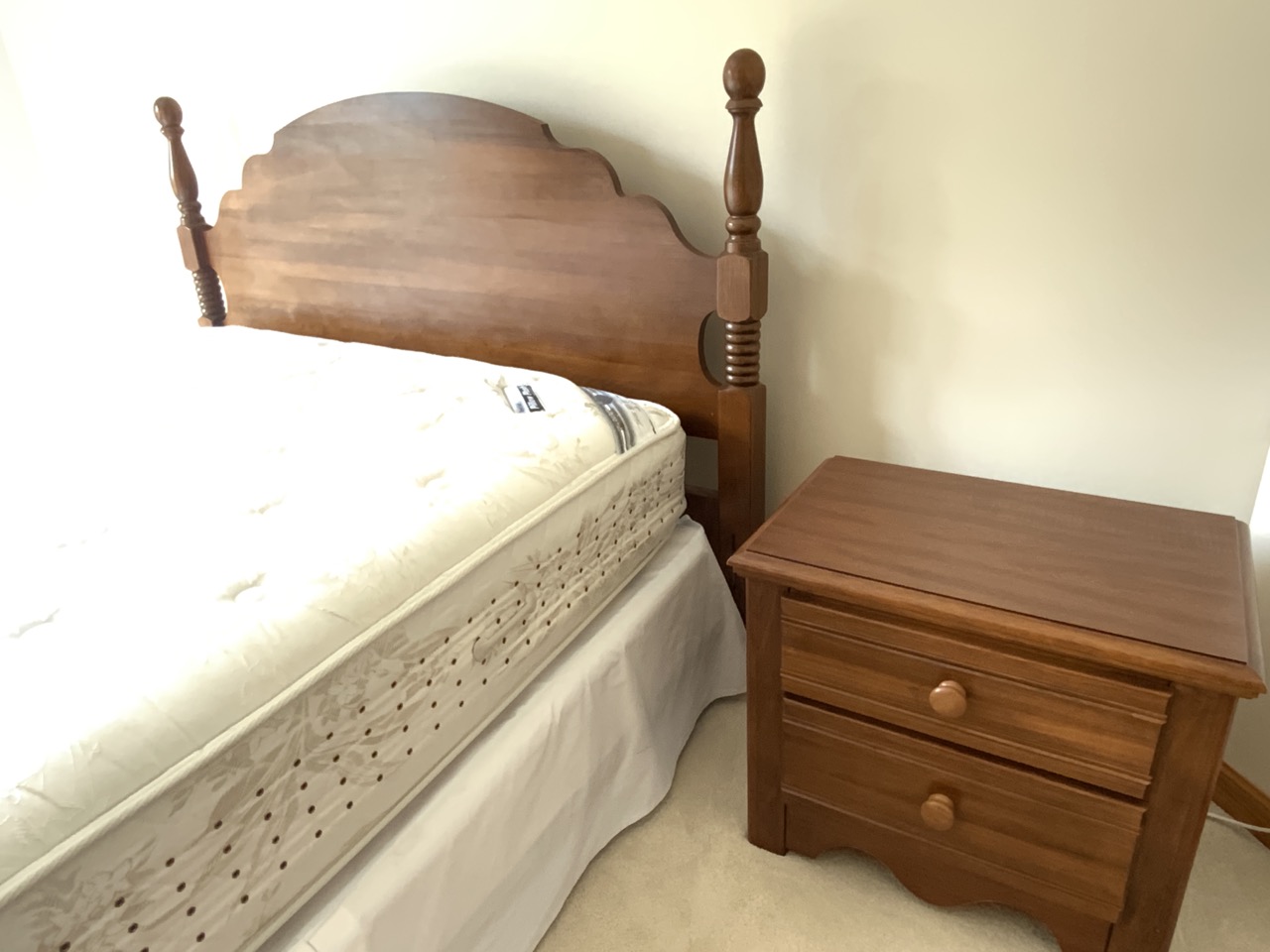 A full size maple bed with nightstand. Mattress is optional and available to take at no cost.