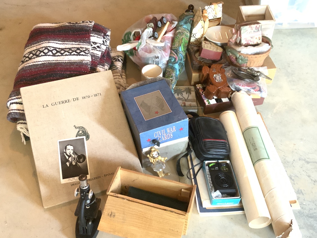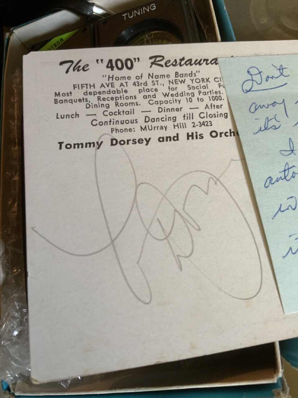 Assorted collectibles, paper ephemera, decorator items, autograph card Tommy Dorsey, WW2 repo posters etc.