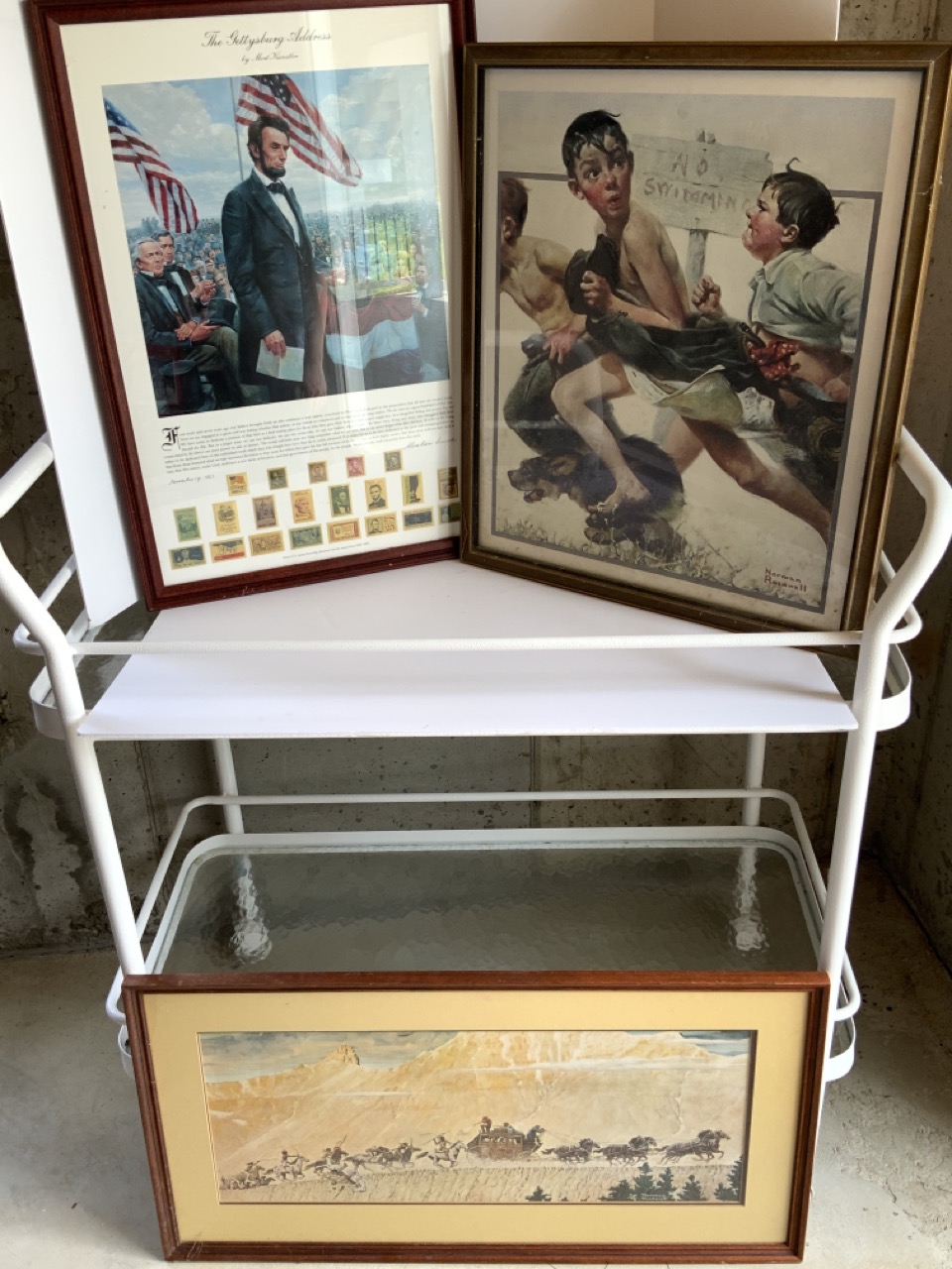 Abraham Lincoln Gettysburg Address by Mort Kunstler, Norman Rockwell Prints No Swimming and Western Frontier Cowboys & Indians