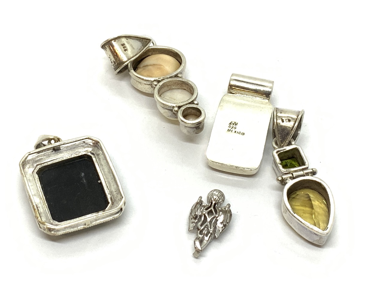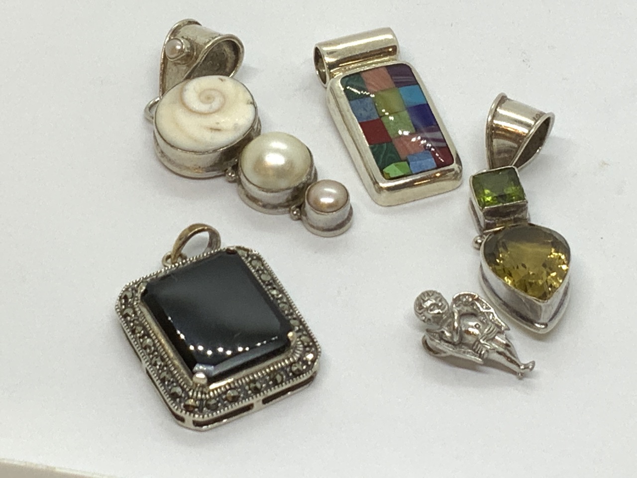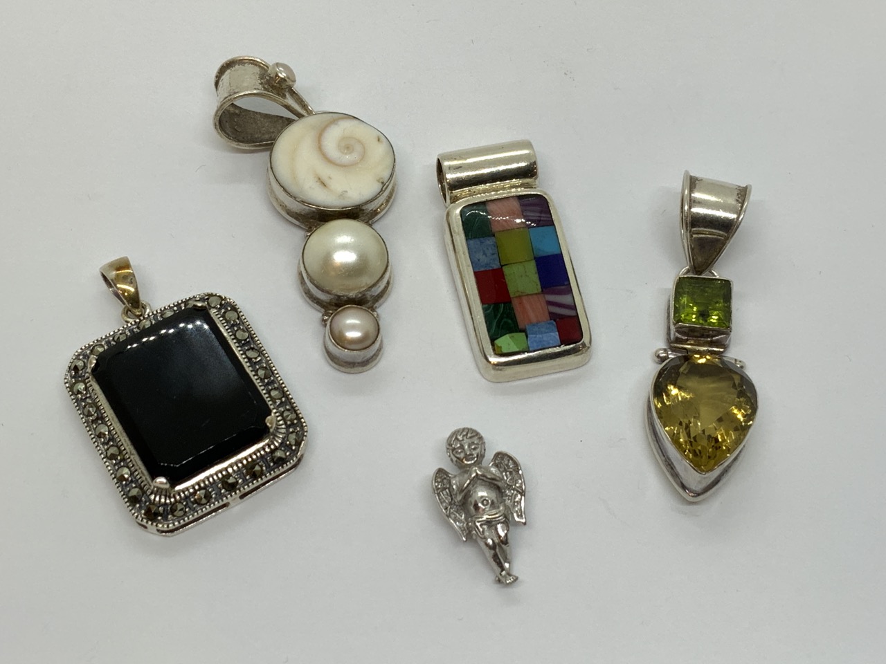 Five (5) sterling silver pendants with stones.