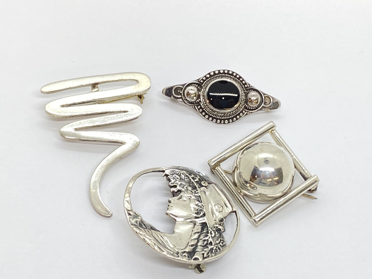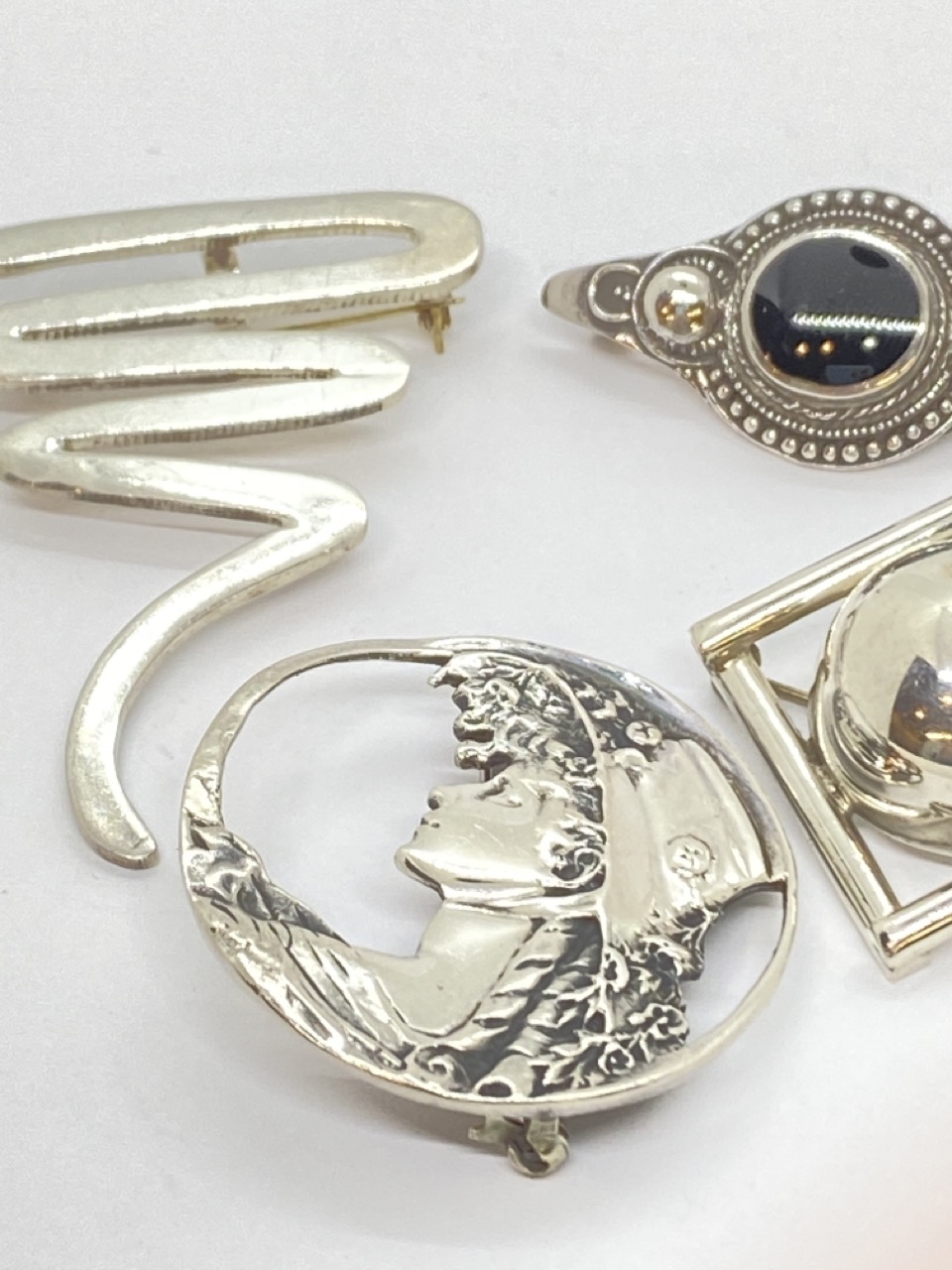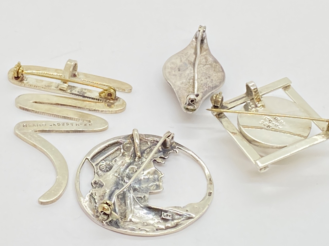 Four (4) Sterling silver pins lot.
