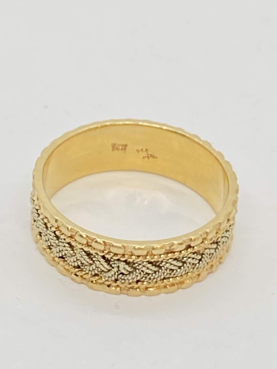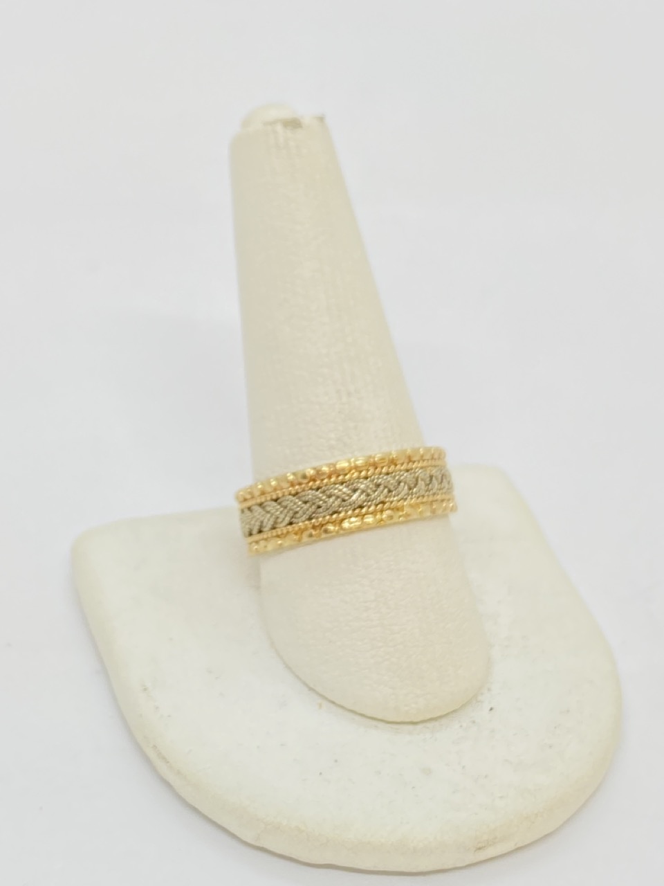 A lady's 14k yellow and white gold band ring.