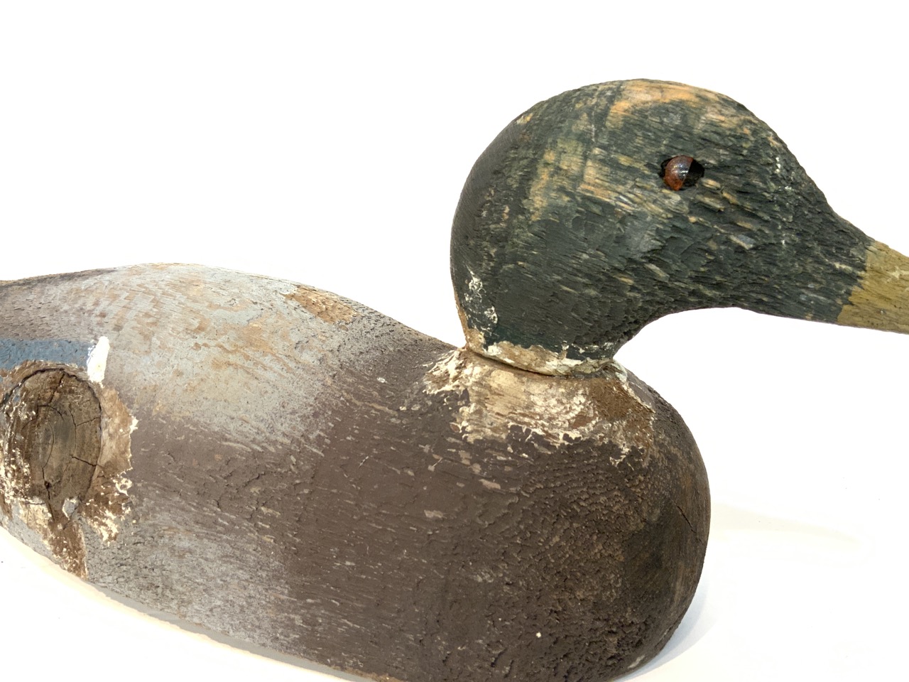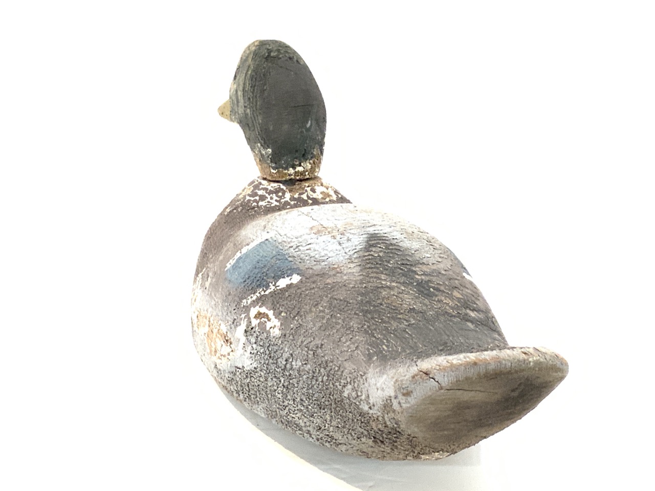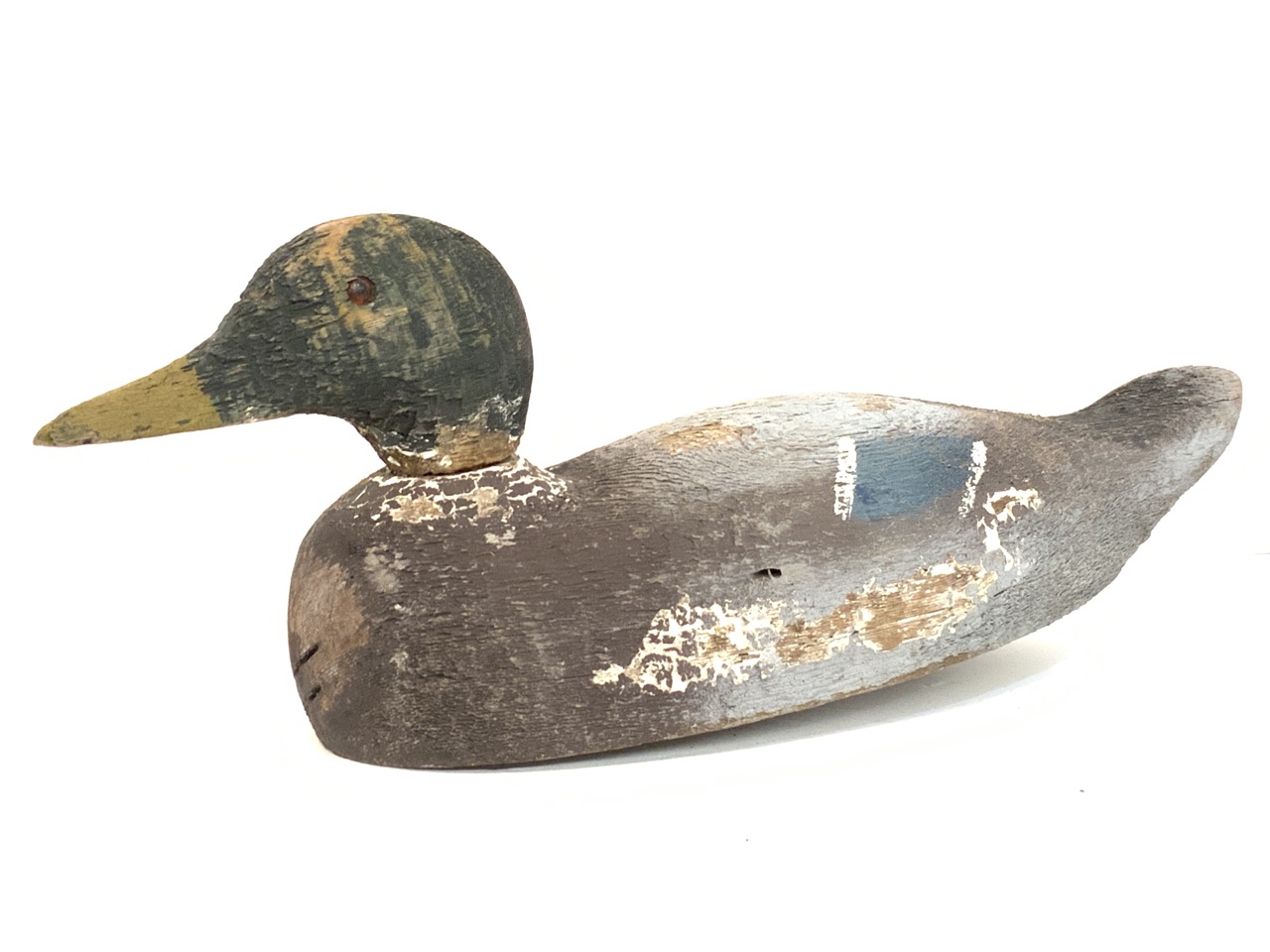 Wooden Mallard duck decoy with blue wing.