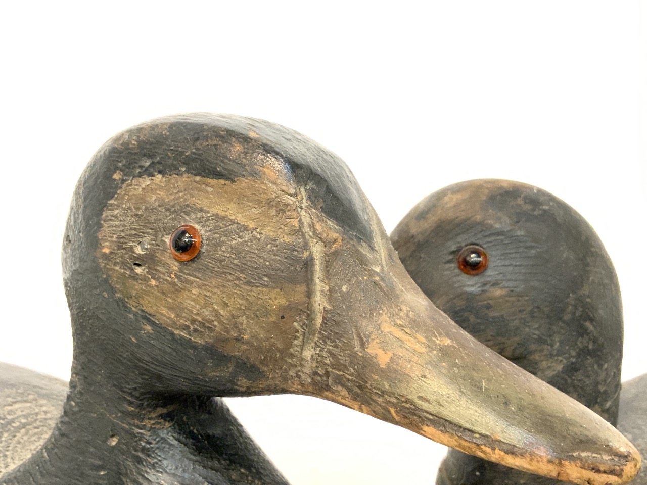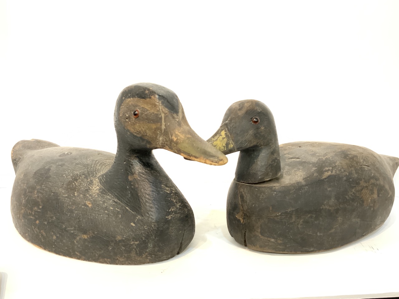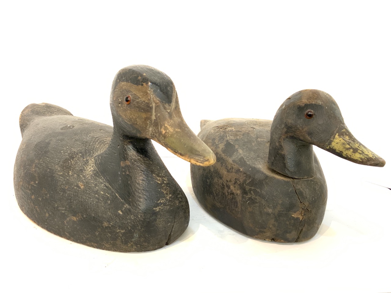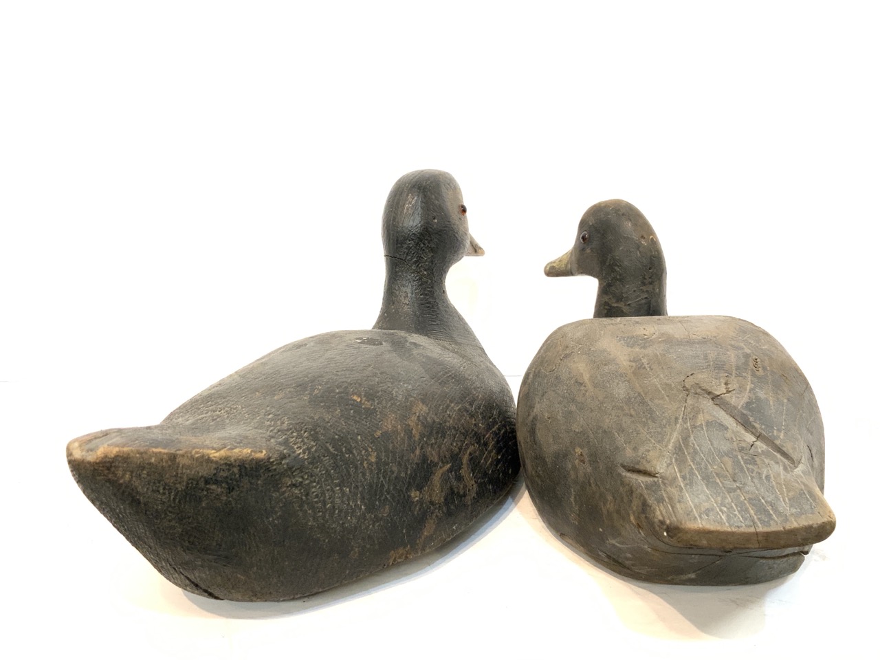Two (2) Black Duck Decoys. Glass Eyes.