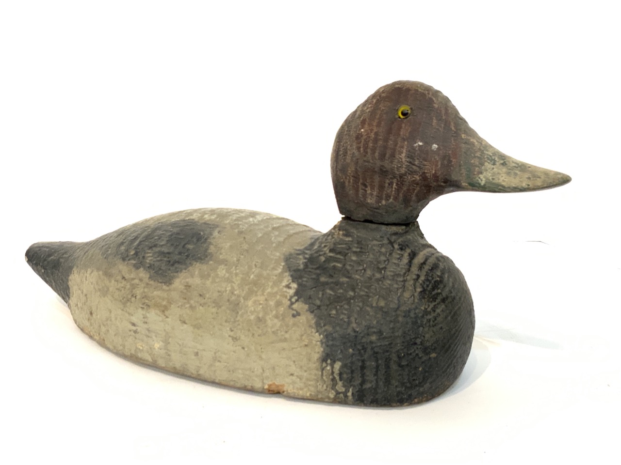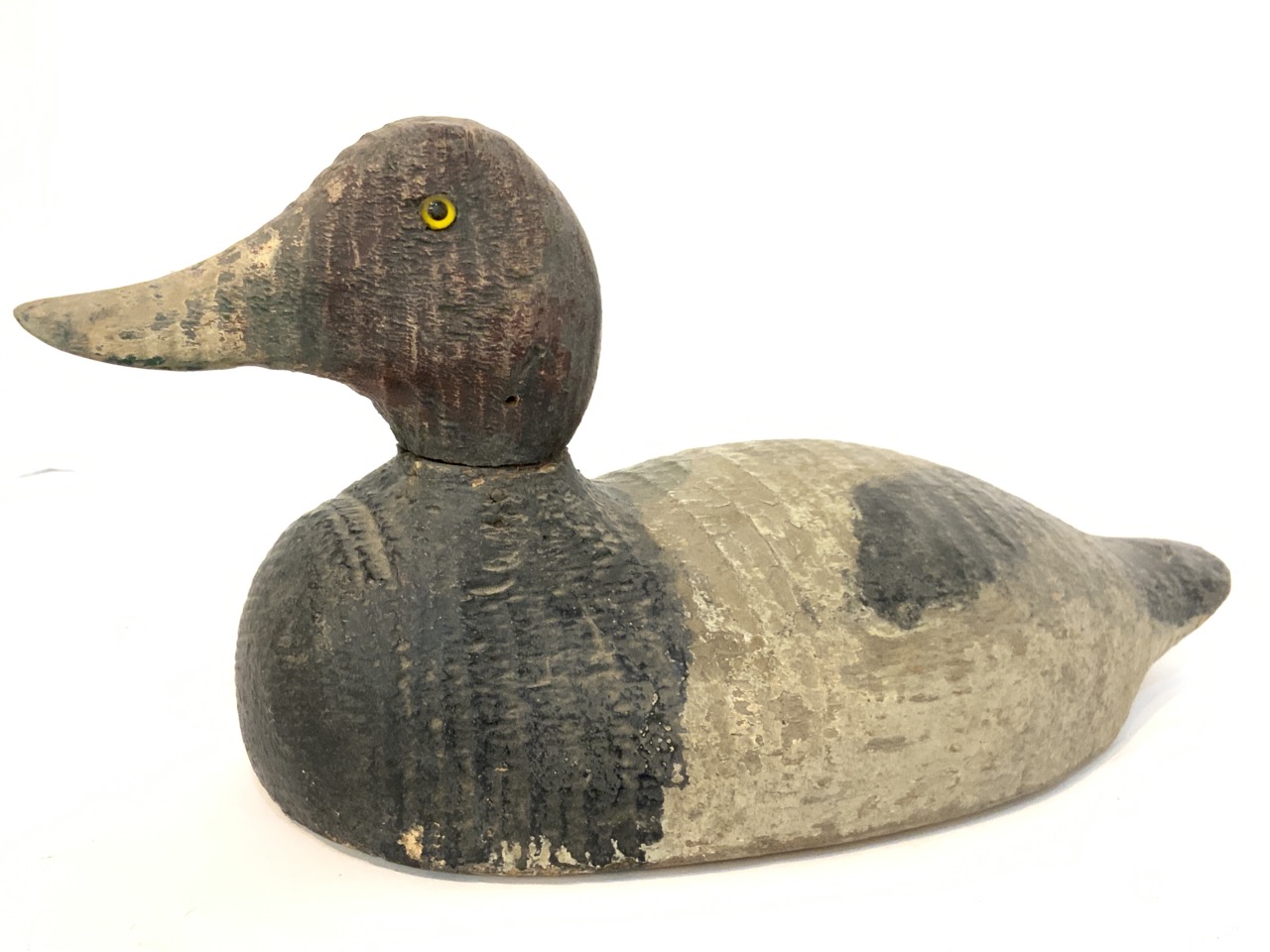 Redhead Duck Decoy. Carved wood with glass eyes.
