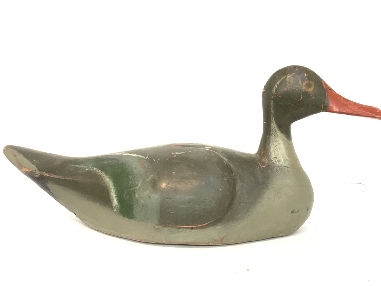 Wooden Red Billed Duck Decoy with green wings. Hand painted with painting eyes.