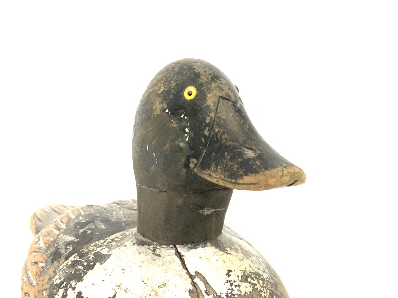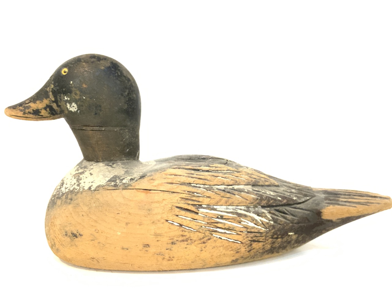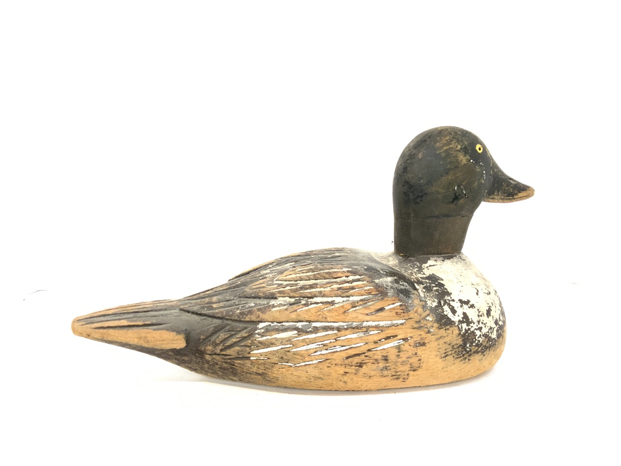 A vintage carved wood duck decoy.
