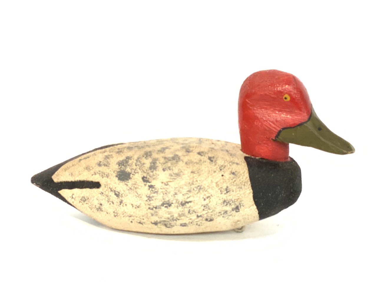 A vintage redhead duck decoy.