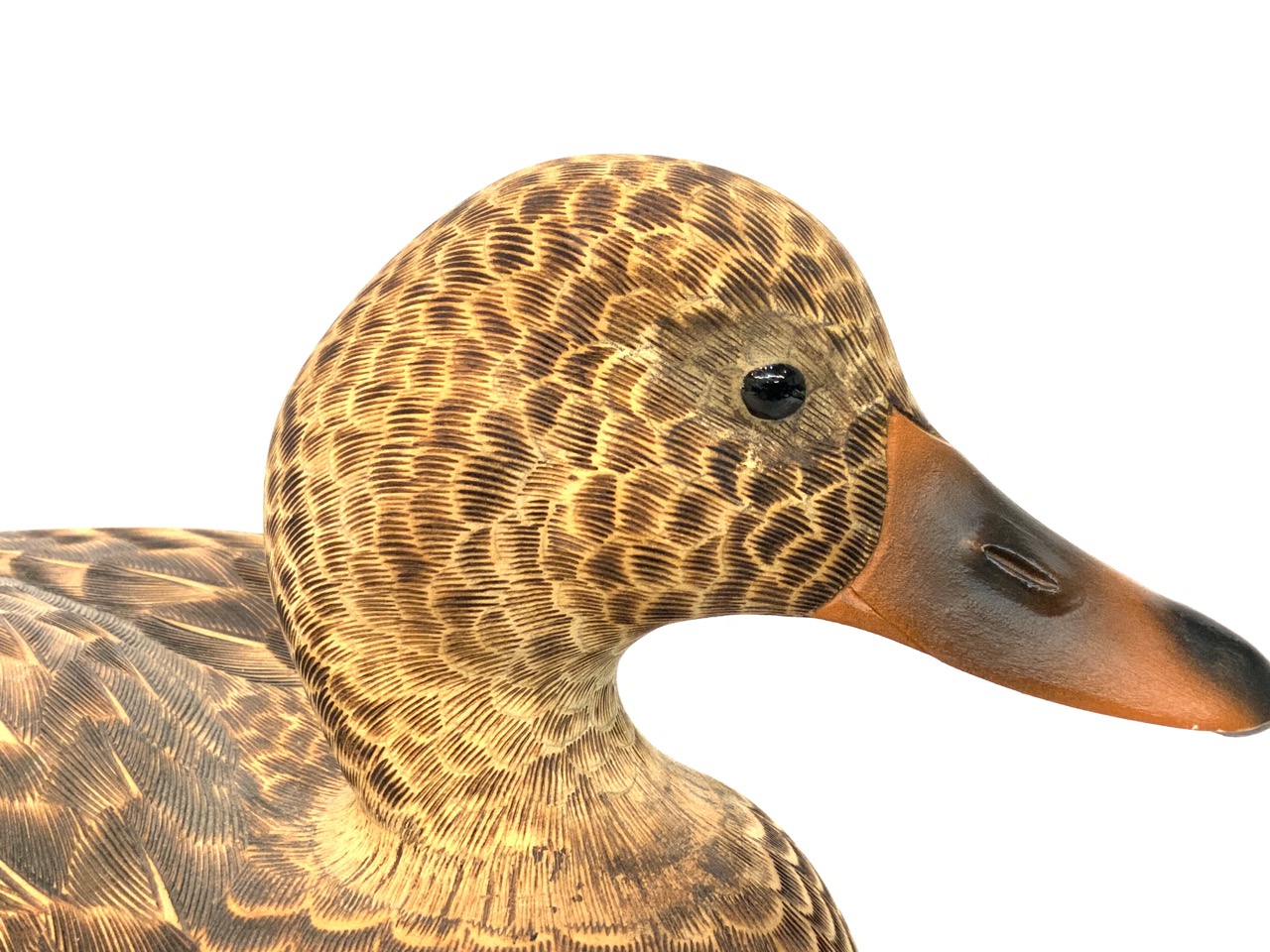 Carved wood with glass eyes.