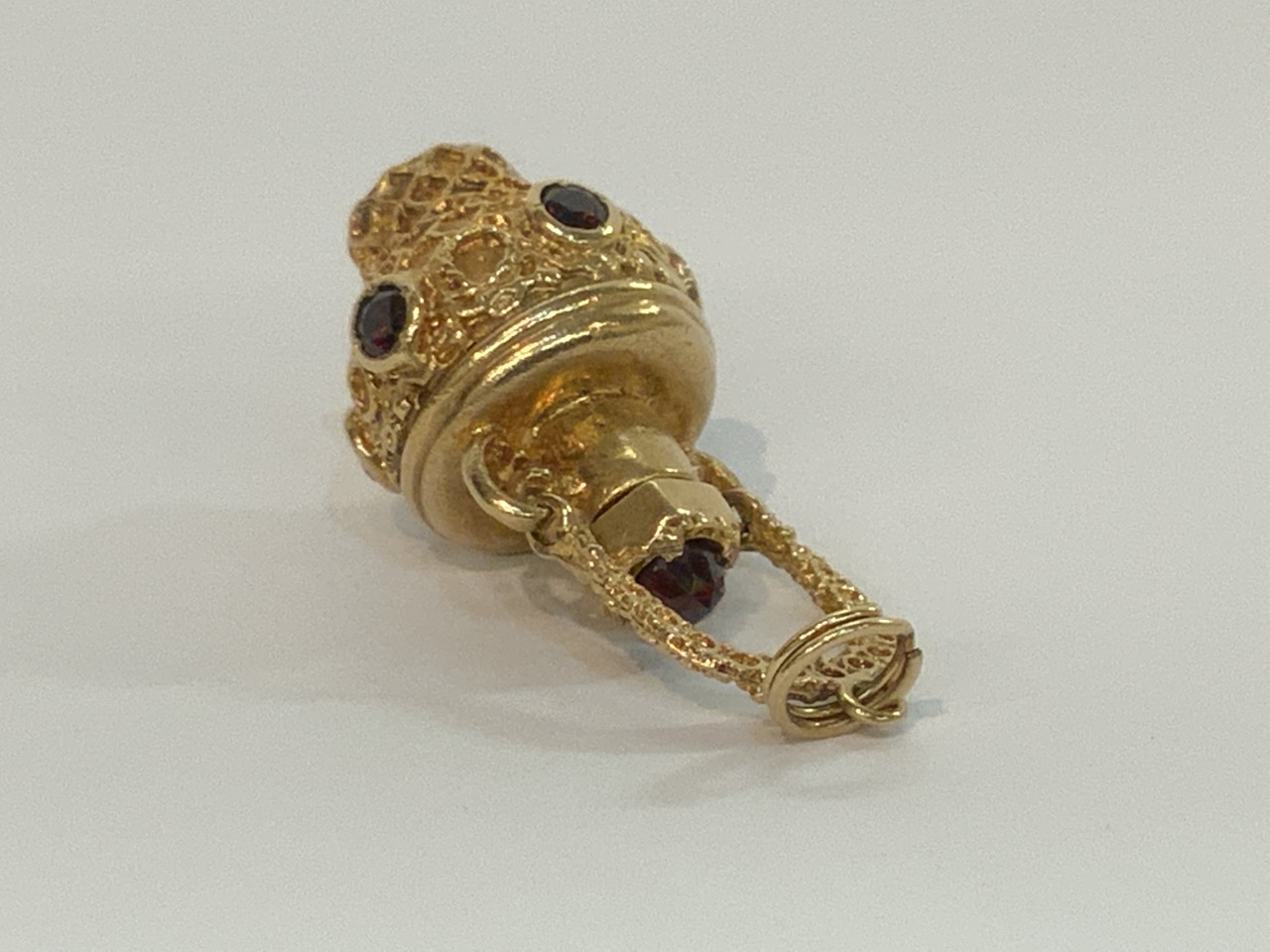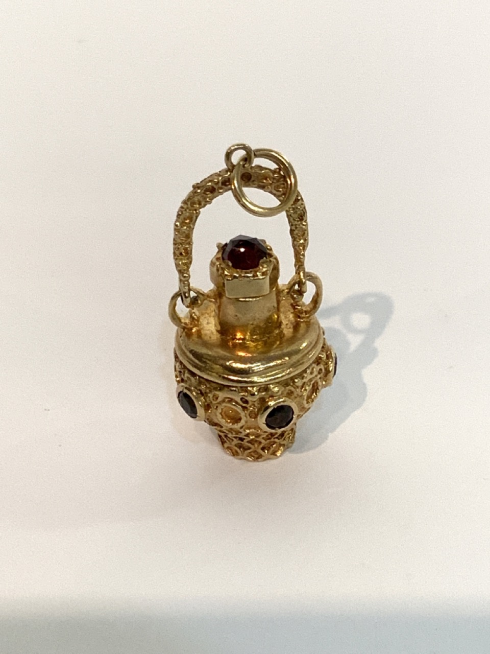 10k (375) yellow gold scent bottle pendant with garnets. European.