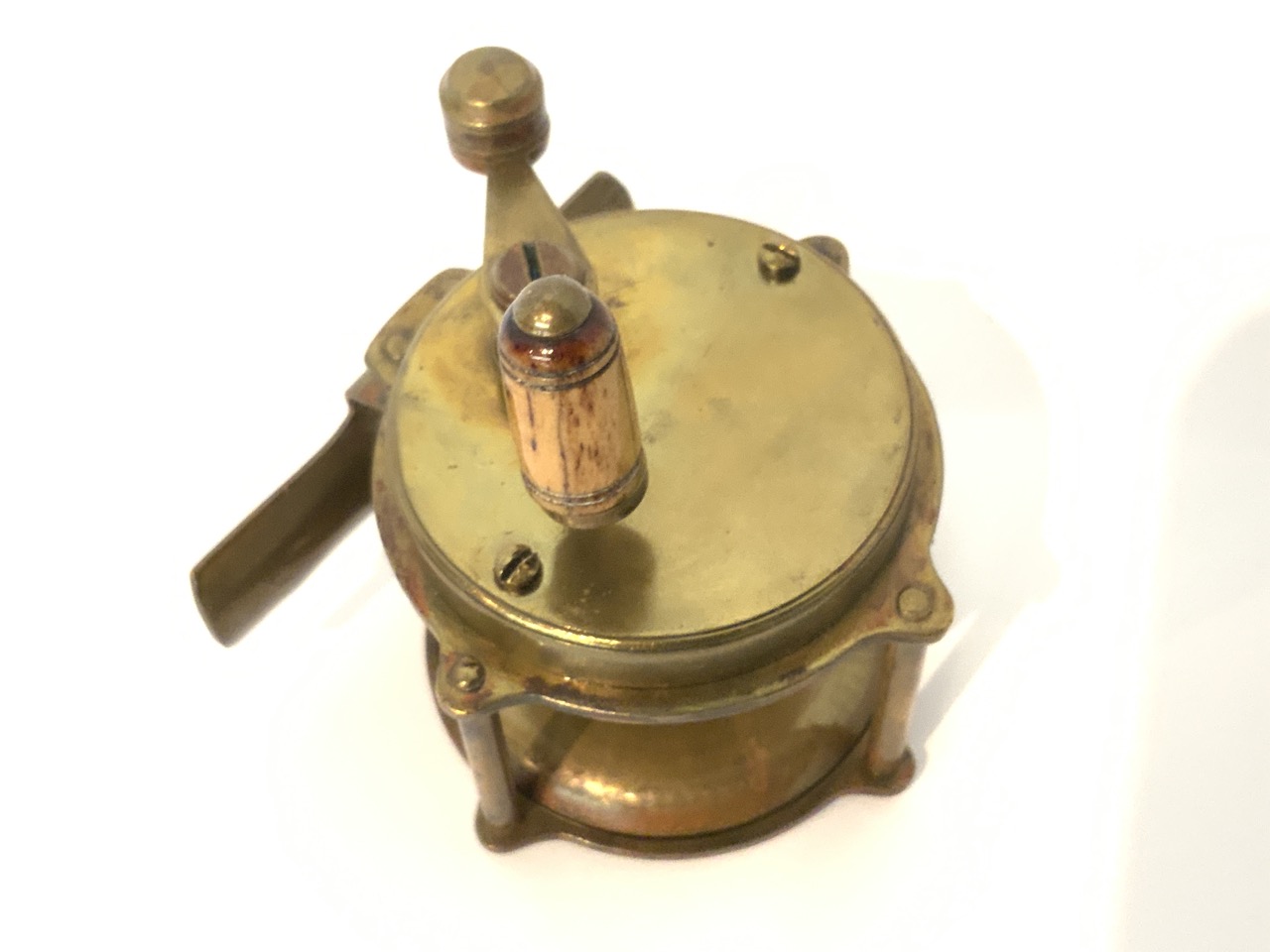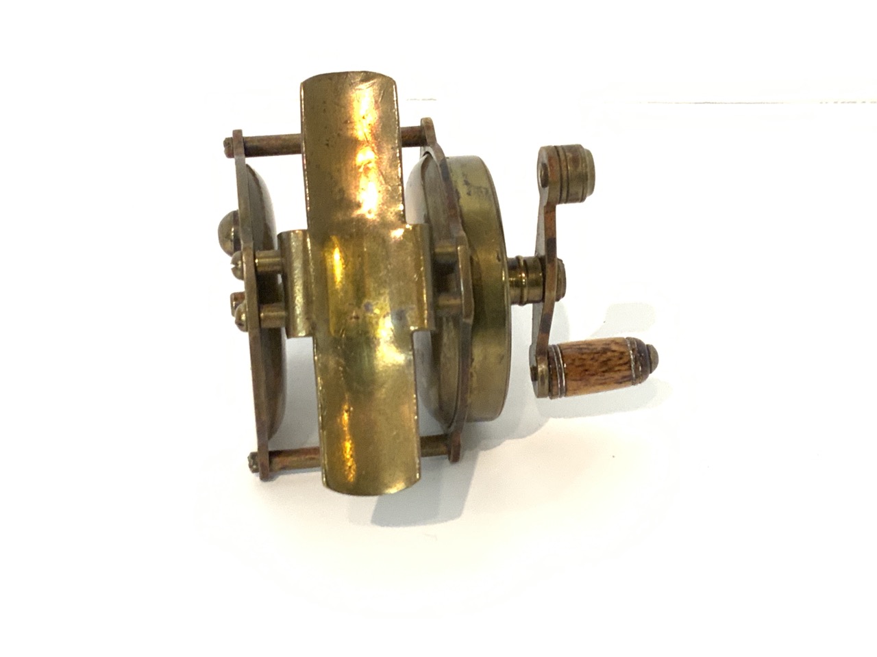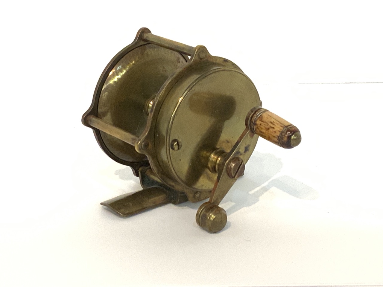 Freshwater fishing reel brass late 19th or early 20th century. Unsigned.