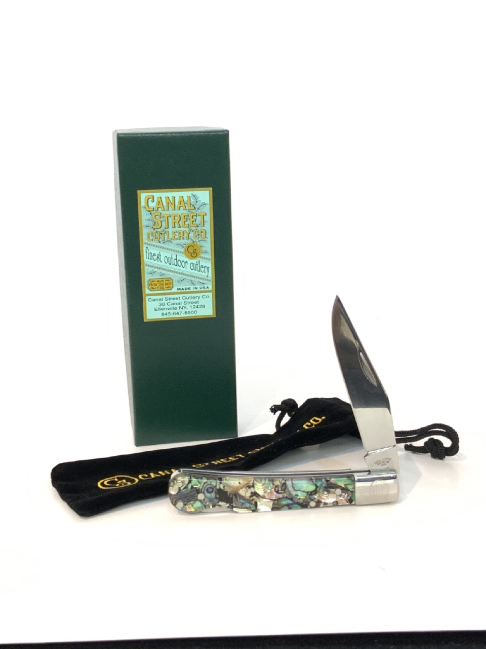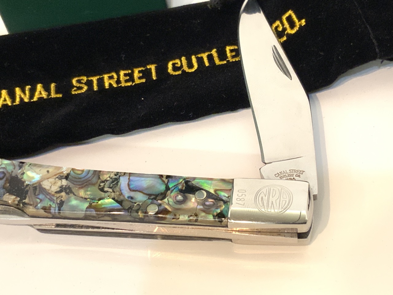 NRA Limited Edition w/ Abalone handle. Hinged Pinch Lock Back Pocket Knife.
