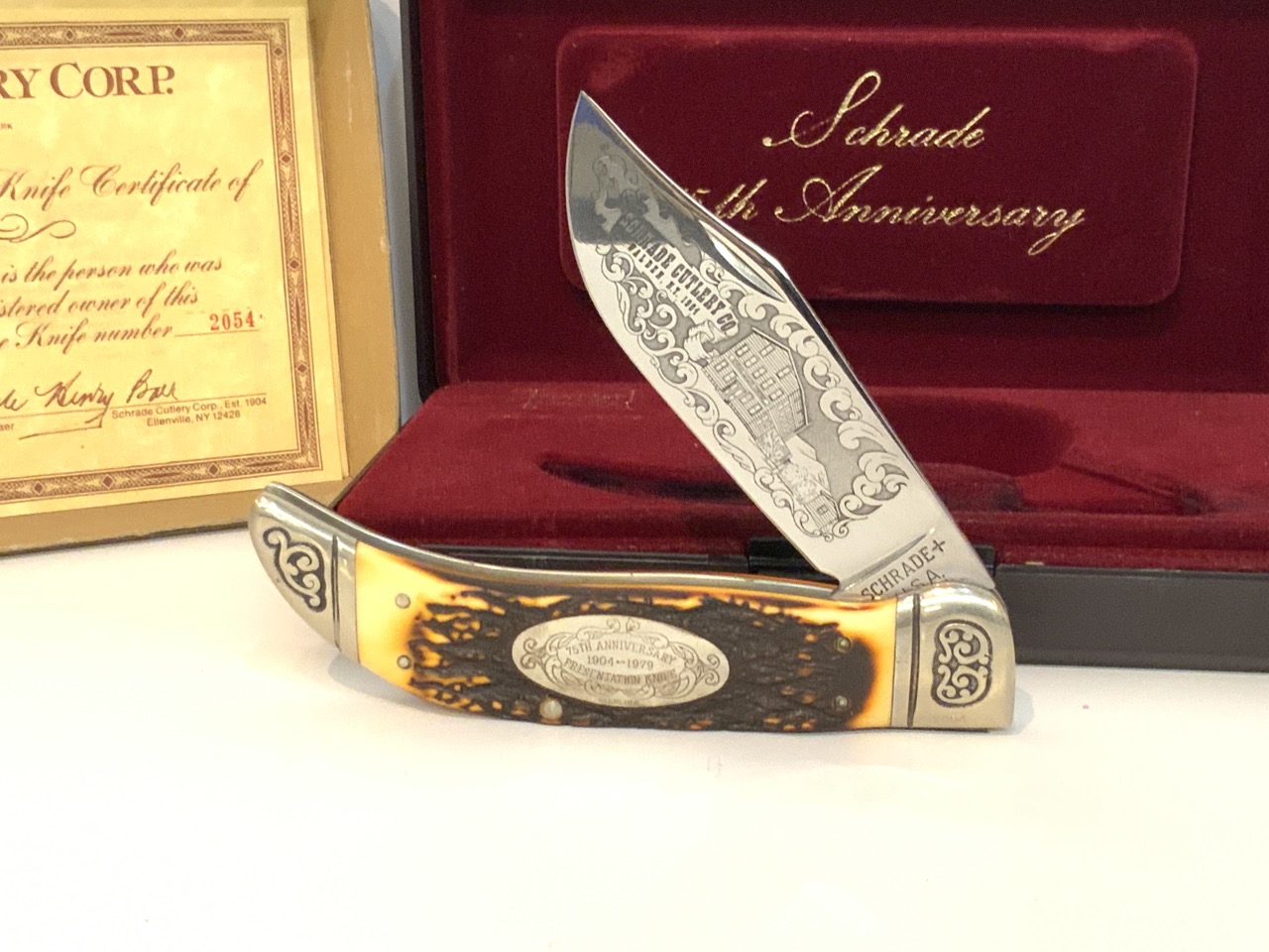 Schrade 75th Anniversary 1904-1979 Stag handled knife. Number 2054.