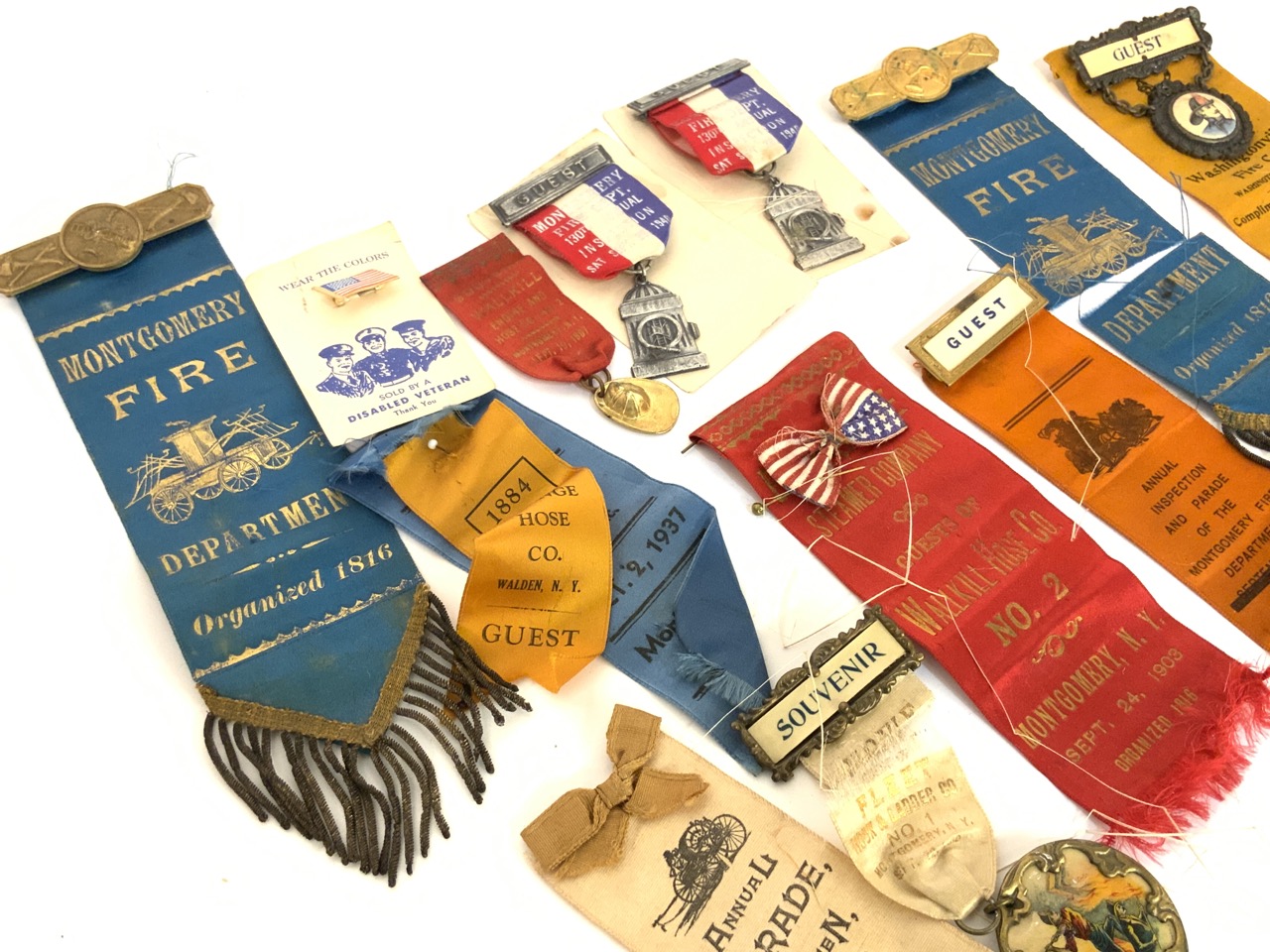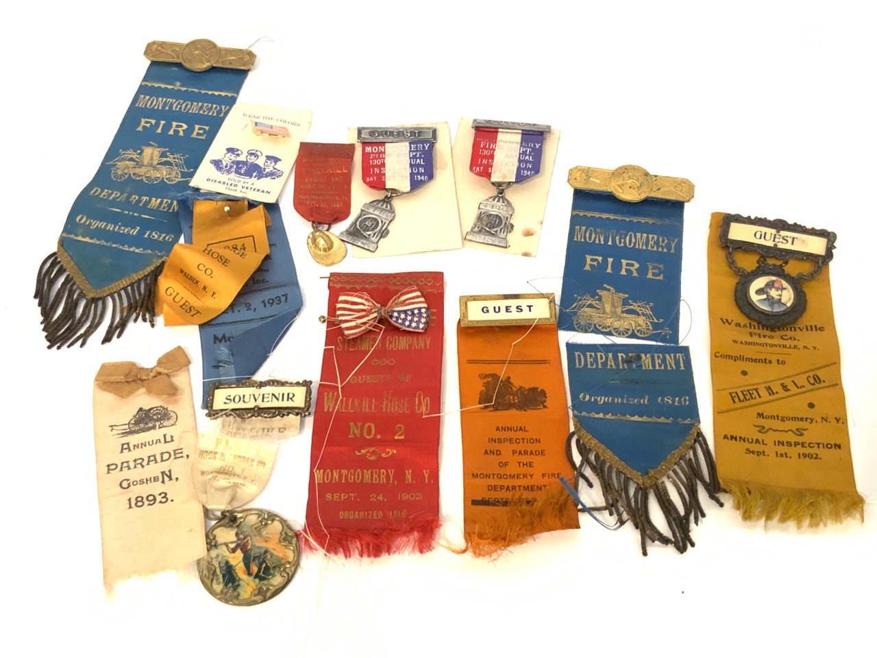 Twelve Pieces, Montgomery, Goshen, Walden, Washingtonville, NY Related FIreman's Medals. As seen in photograph preview.