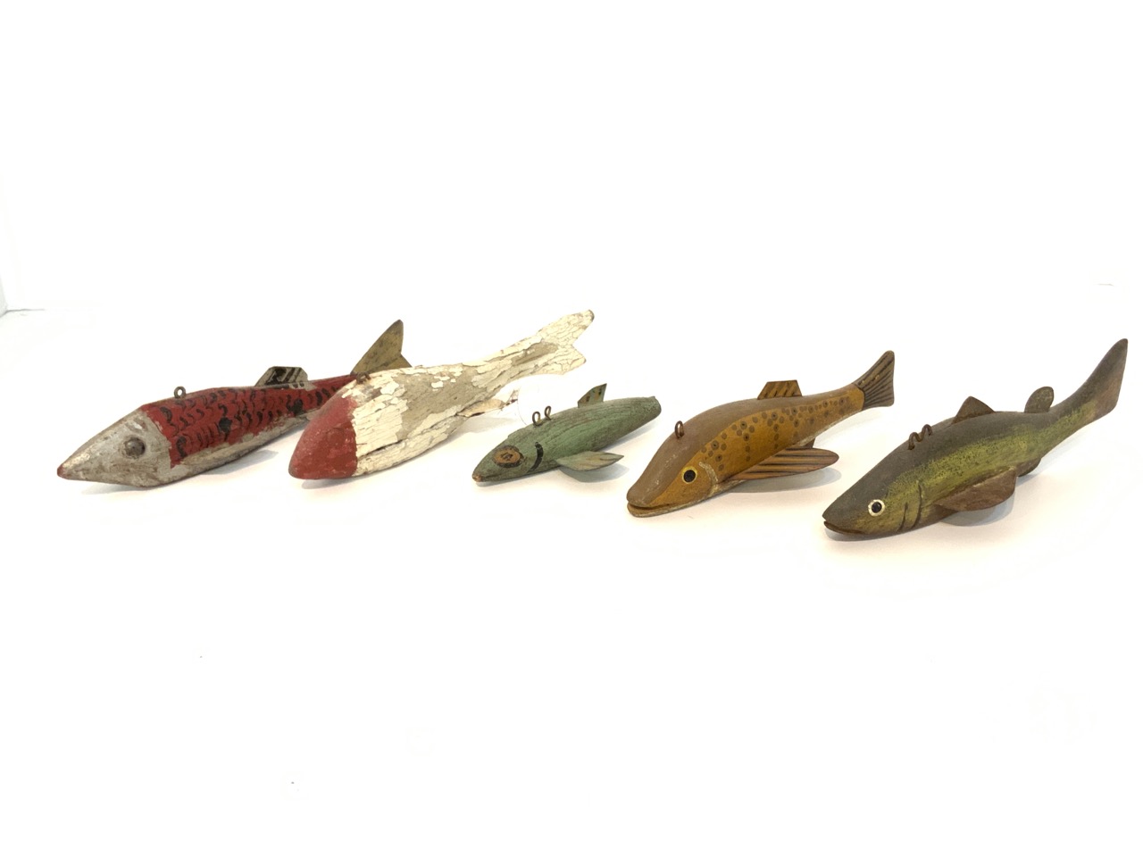 Lot of five (5) wood fish decoys.