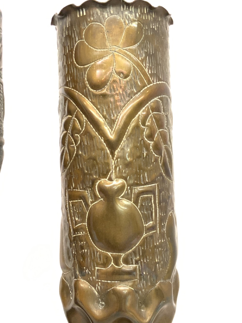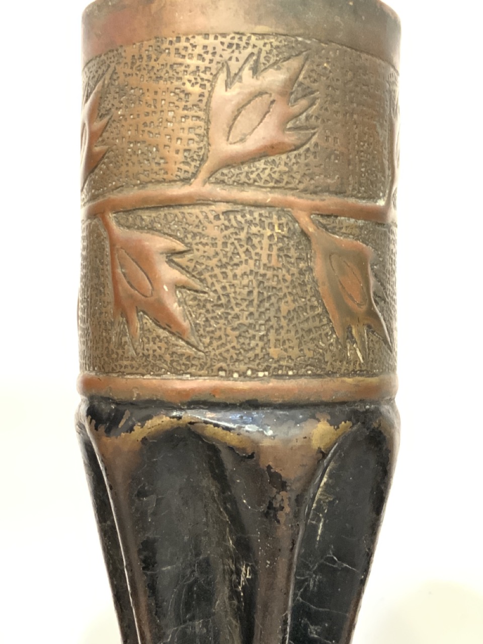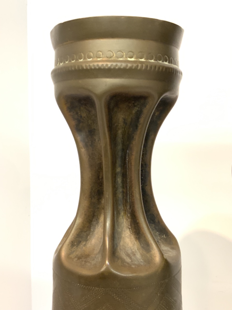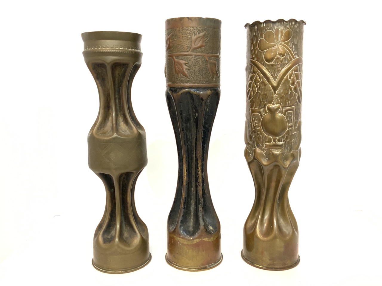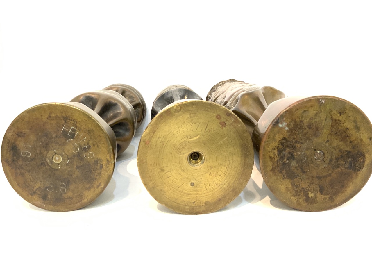 Three (3) piece WWI Trench Art Shell Vases.