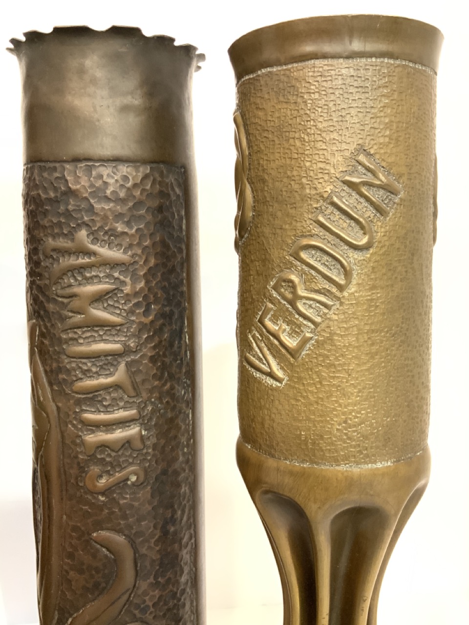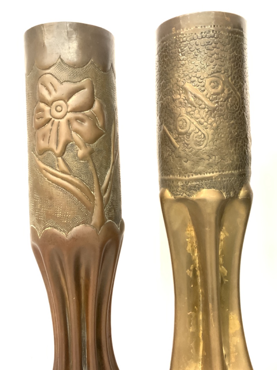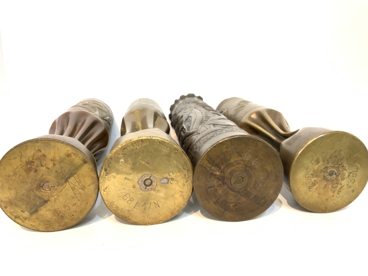 Four (4) piece WWI Trench art shell vases.