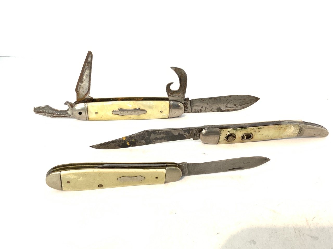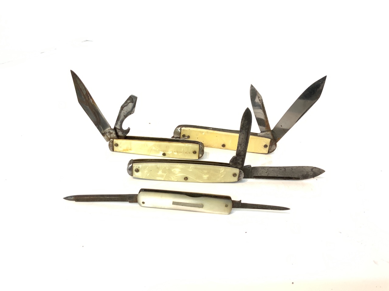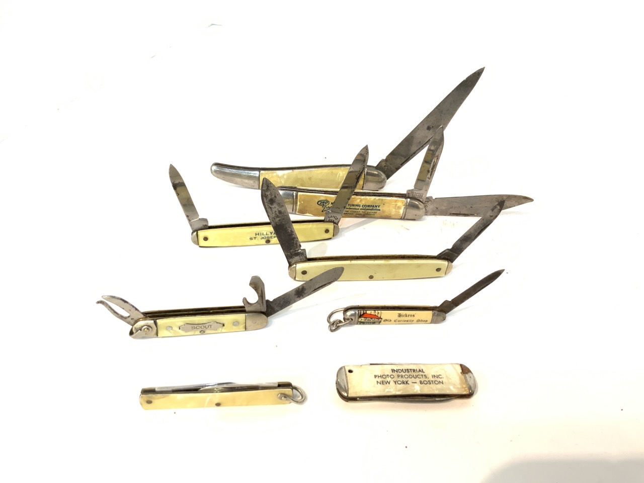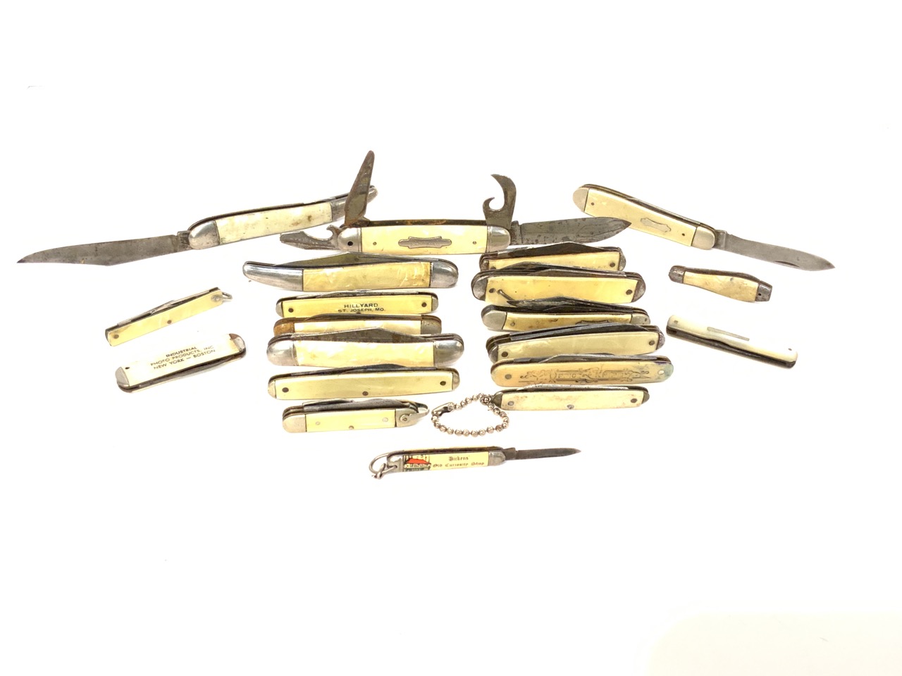 A compiled grouping of twenty (20) assorted pocket knives with advertising. Novelty related etc.