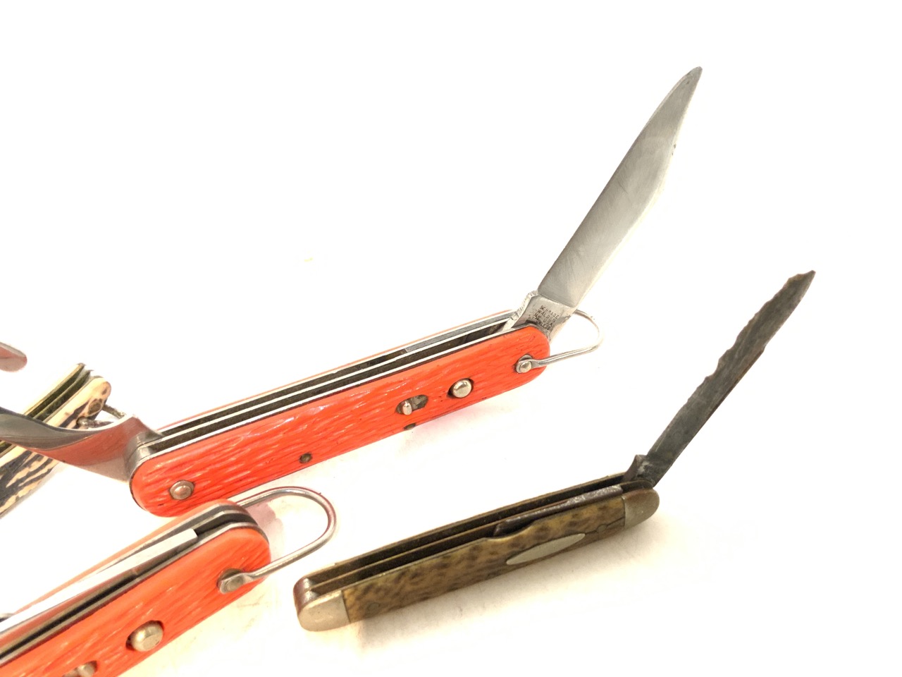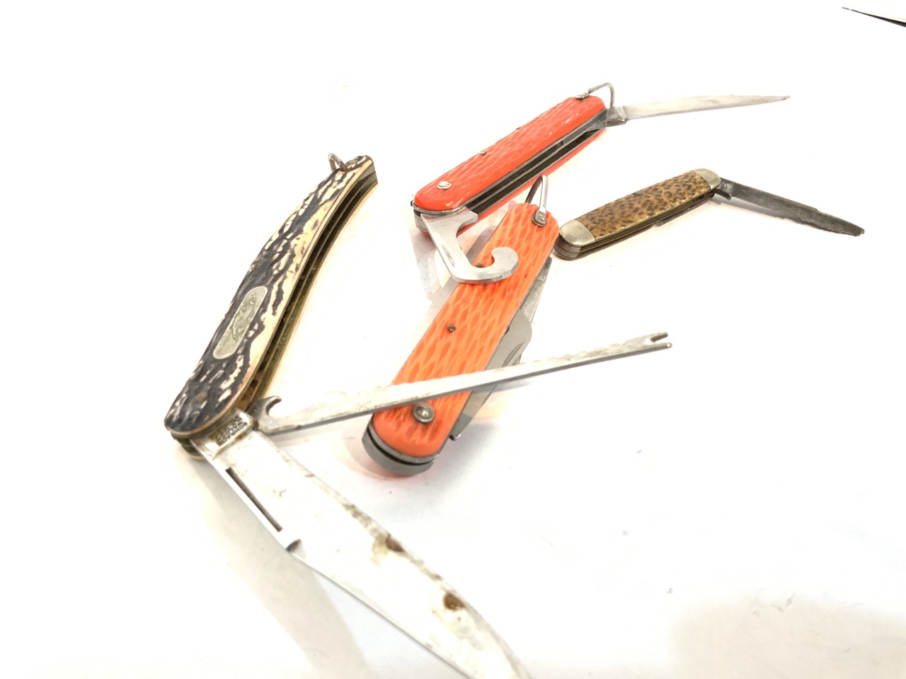 A grouping of four (4) Stag handled pocket knives.