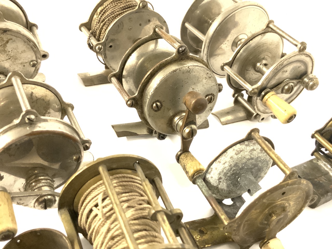 A compiled grouping of eleven (11) antique Bait Casting Reels