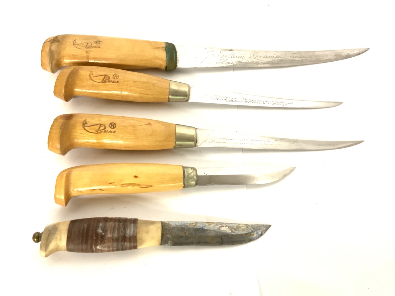 Five (5) Fish Filleting Knives. Marttiini Finland.