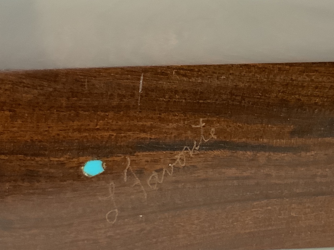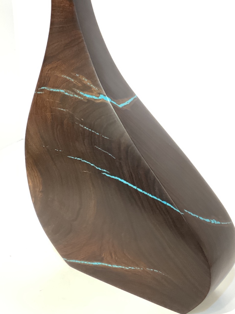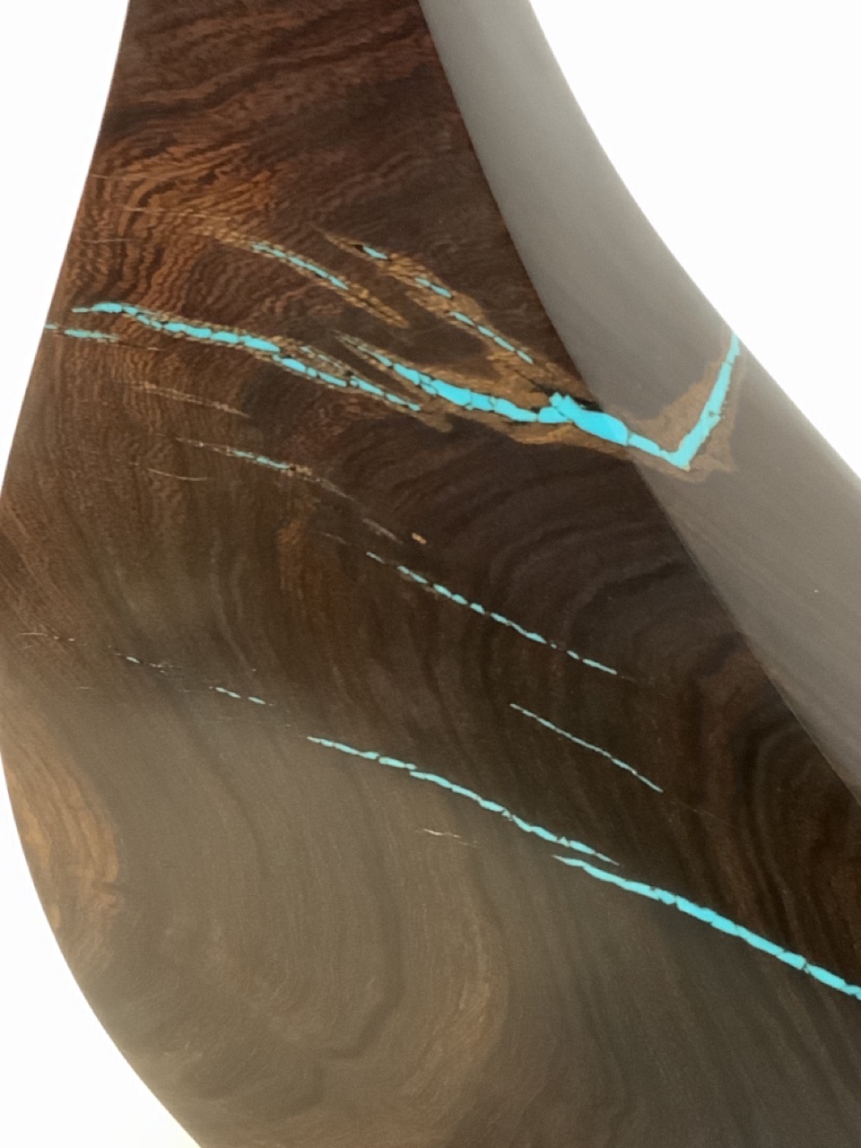 A fine artisan vase. Hardwood infused with turquoise stone. Signed by Lawrence Favorite (L. Favorite)