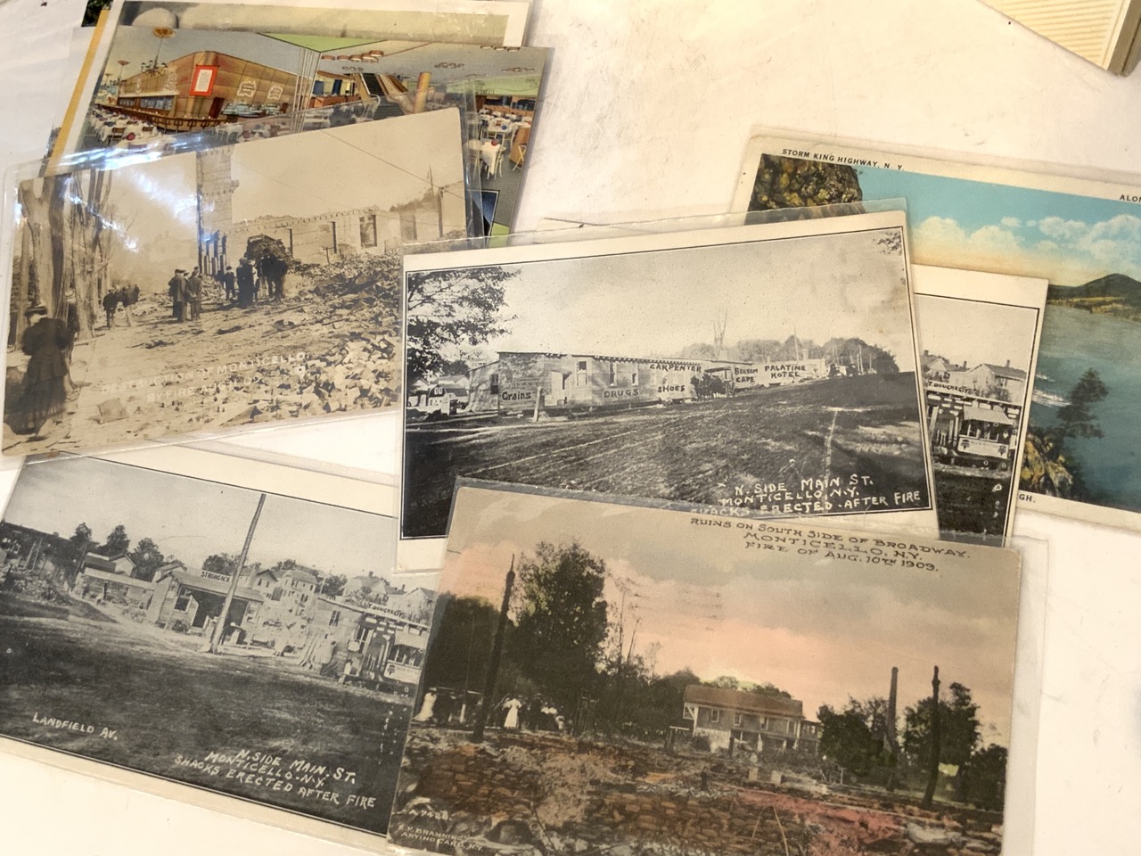 Approx. 115 postcards related to New York State. Livingston Manor, Monroe, Chester, Goshen, Central Valley, Monticello Fires, Newburgh, Minnewaska and more!