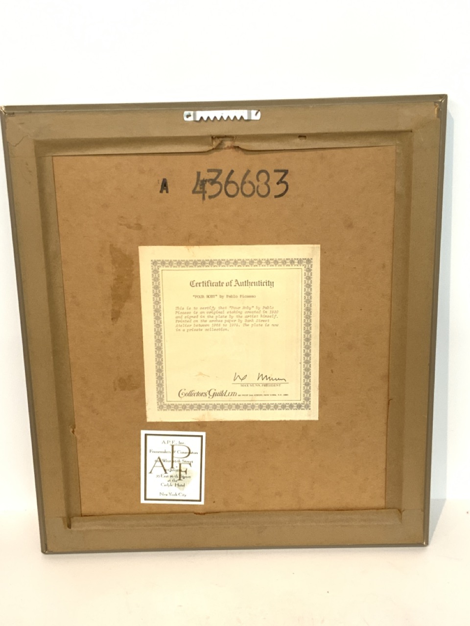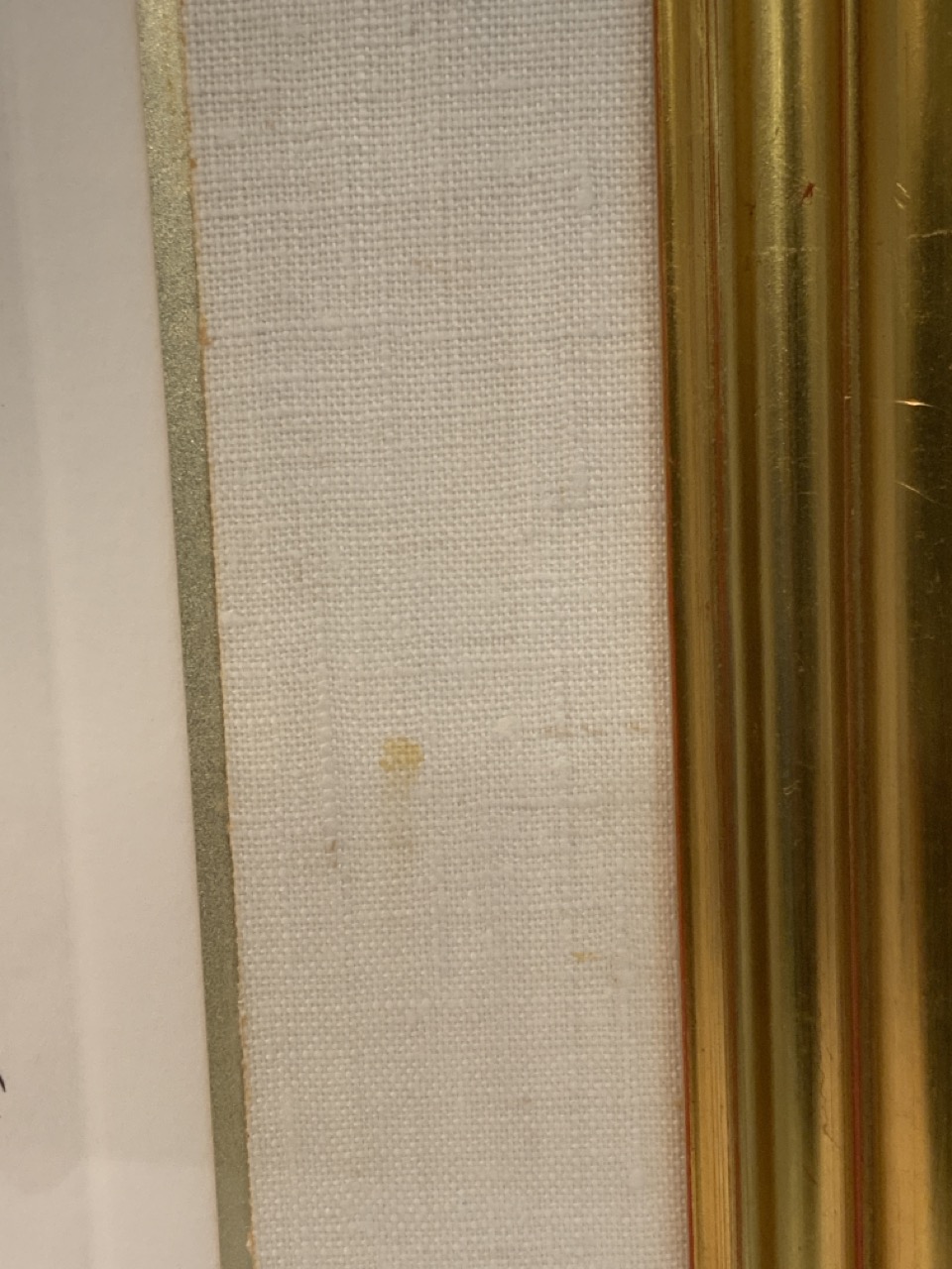 Professionally framed with linen matte and gold gilt frame. Matte has two small stains as seen in photograph preview. Image clear, crisp and free of damage. This edition comes with certificate of authencity on reverse by Collector's Guild, New York, New York.