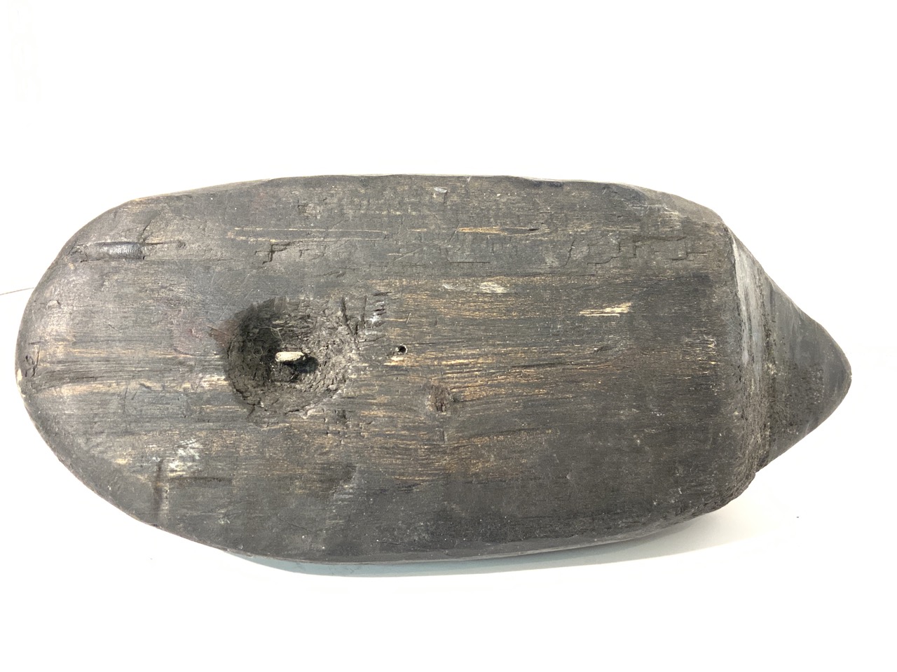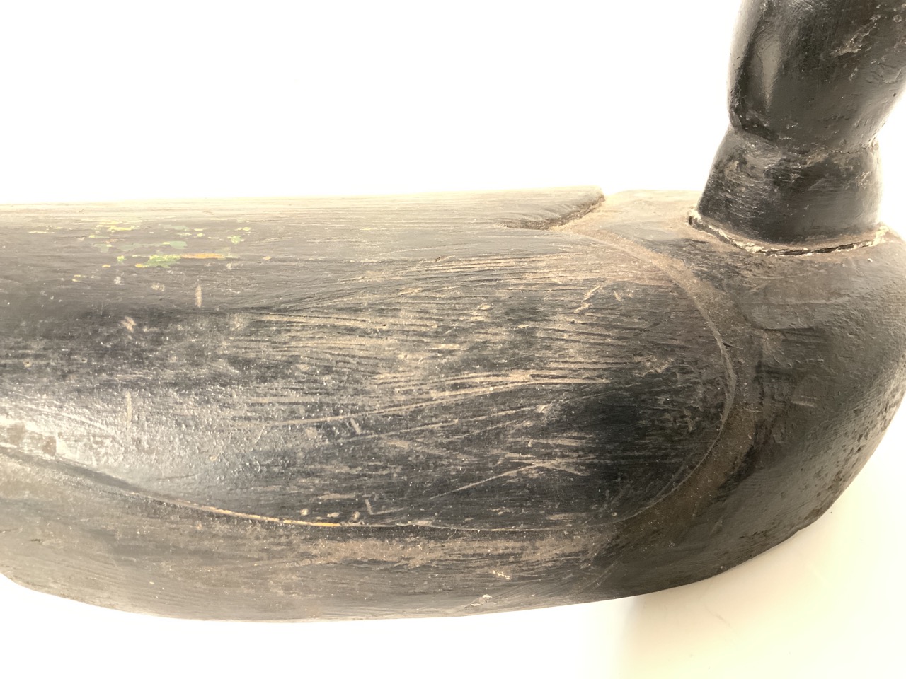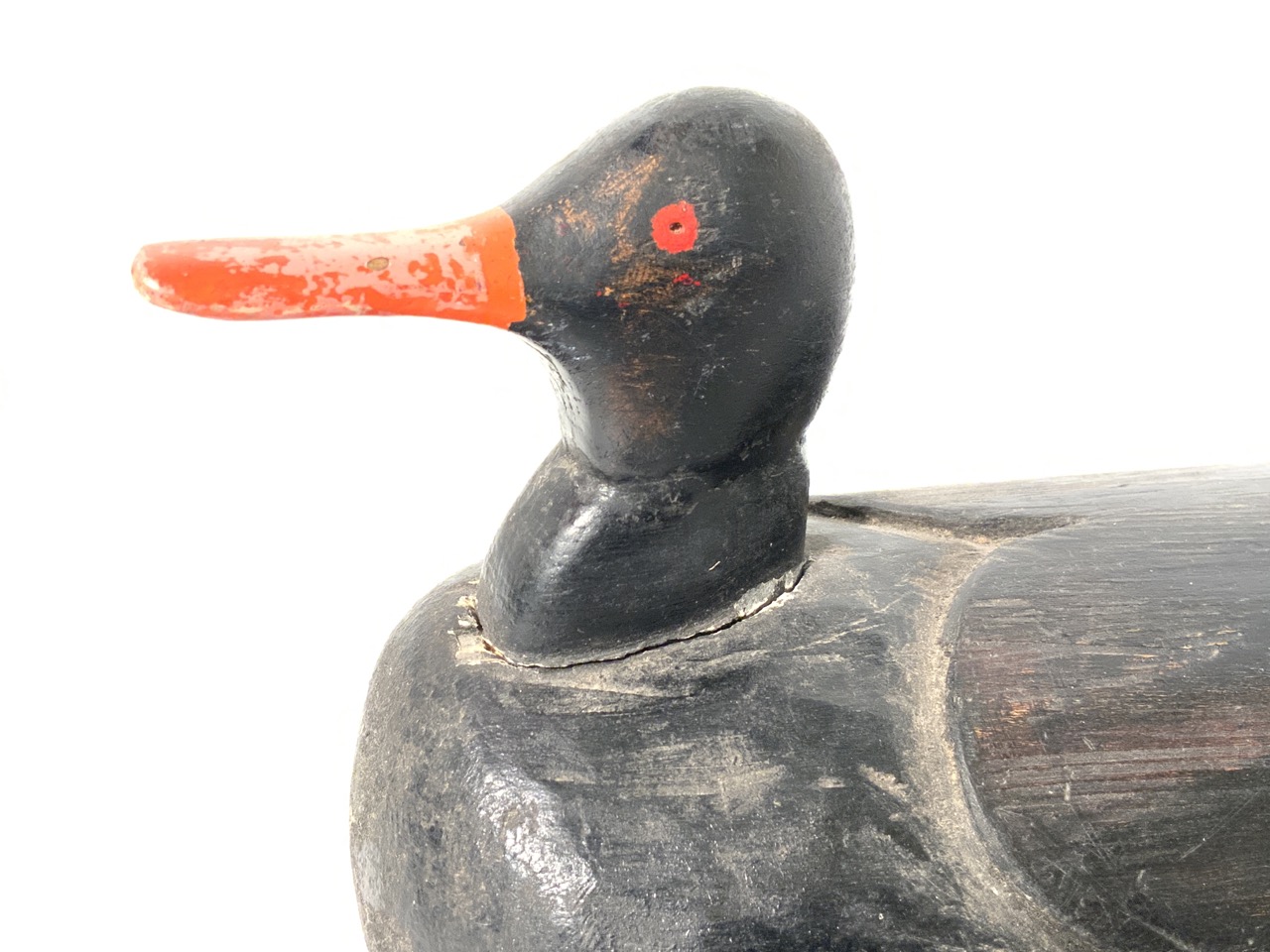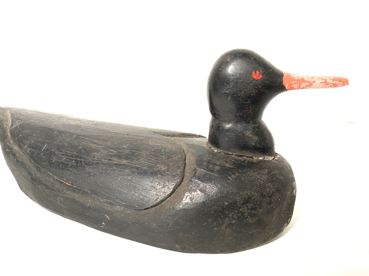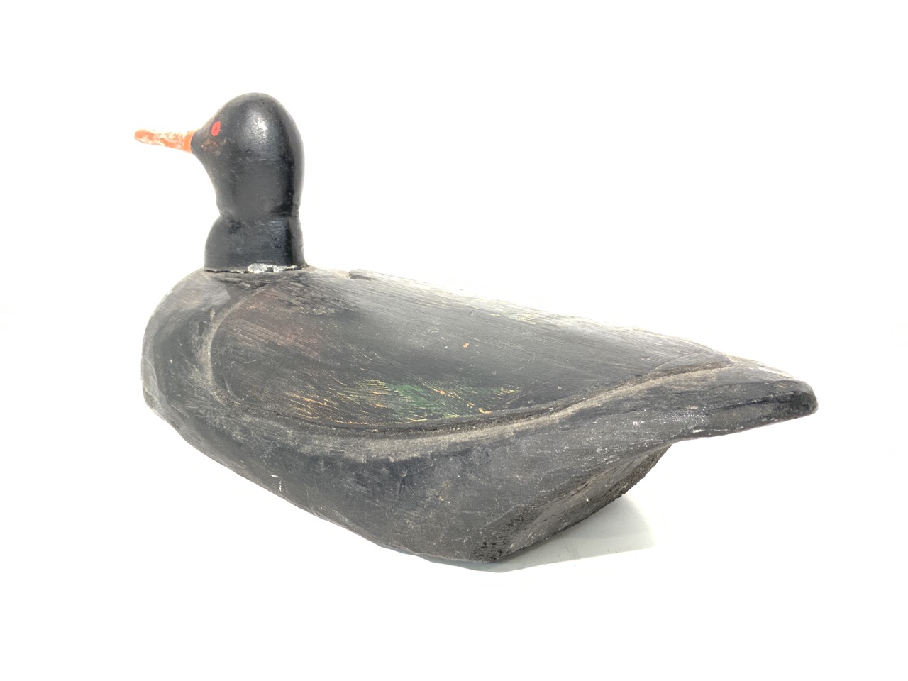 Black bird decoy with orange beak.