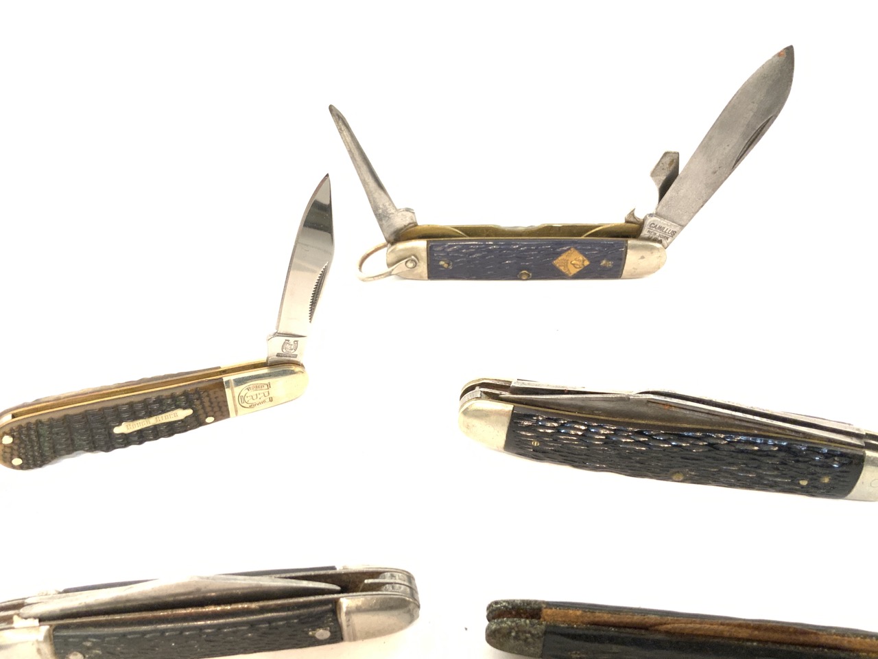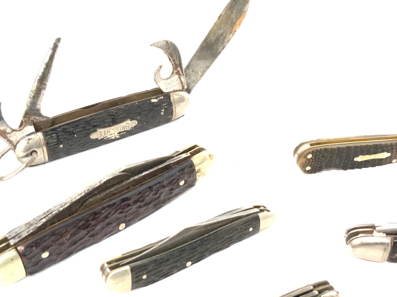 A compiled grouping of nine (9) vintage assorted pocket knives. Estate collection. Please see photograph preview or call.