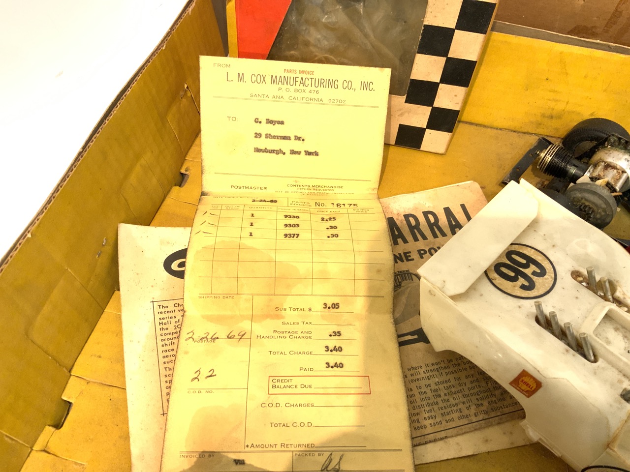Toys is still factory tied in box. Near mint conditioni with exception of exposure to attic dust and debris. Foxing and cleaning needed. Comes with Original Receipt