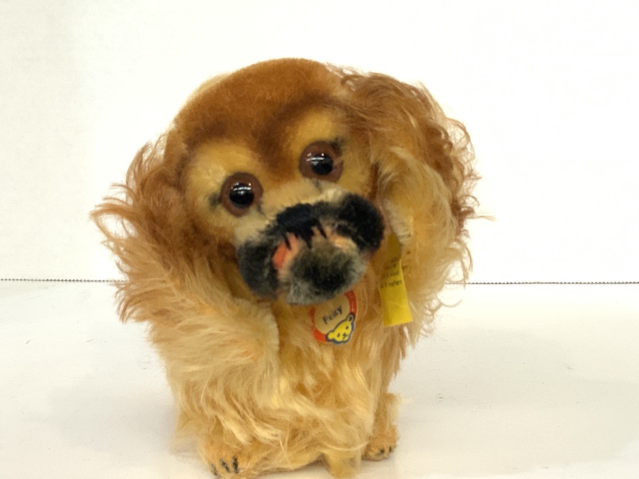 Vintage Steiff "Peky" dog. Button and tag intact.