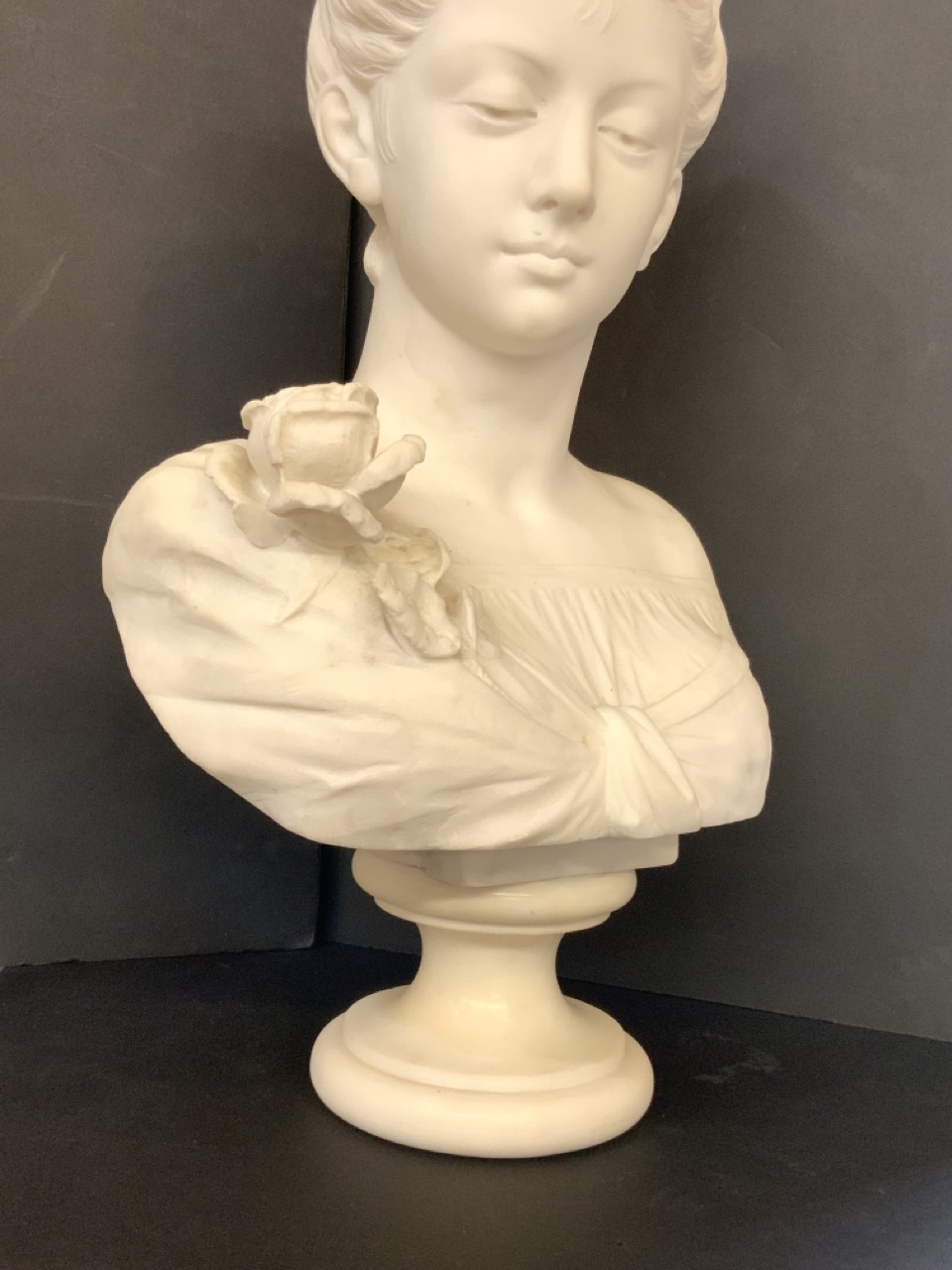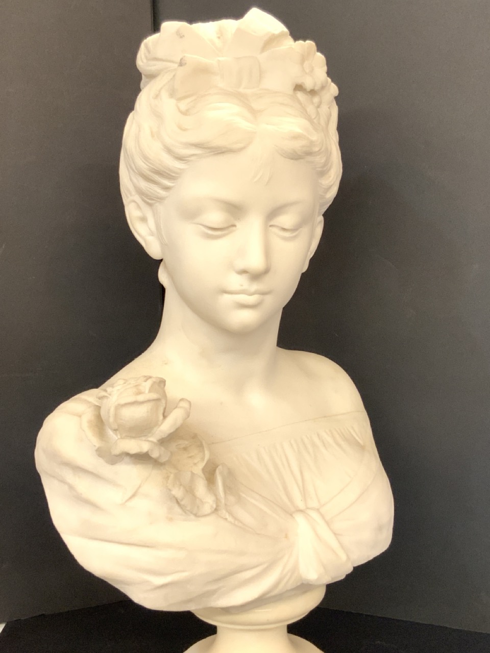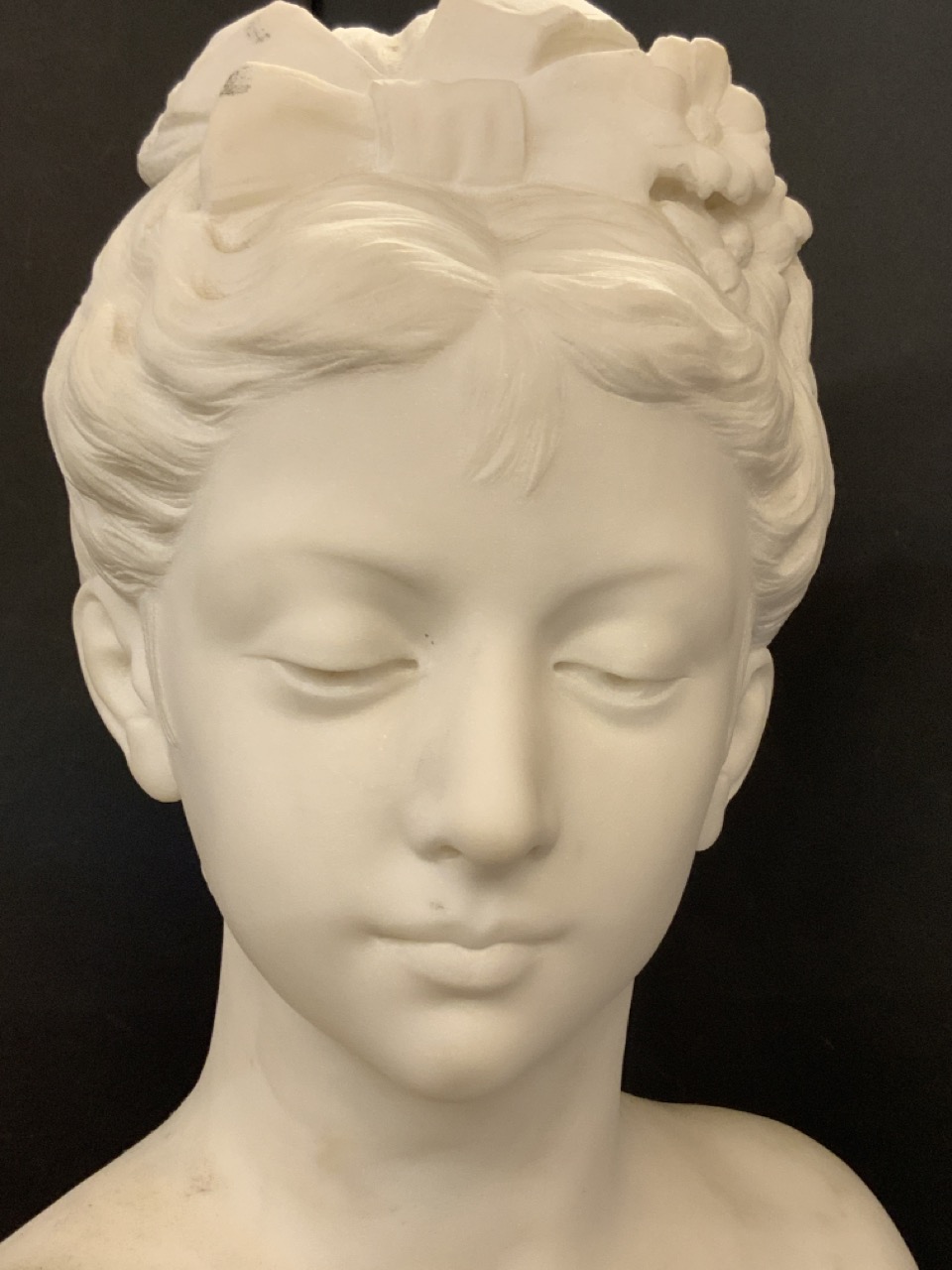 Marble bust sculpture of female.